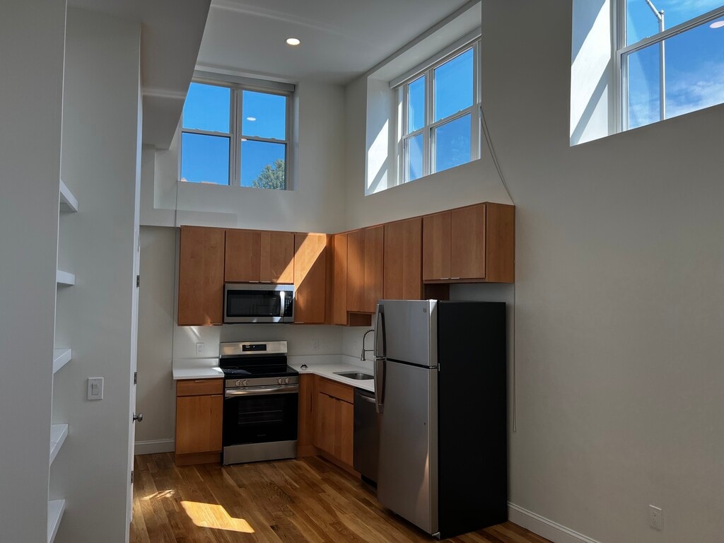 Rarely available studio corner unit in the historic Drury Building on Main st. This apartment was recently constructed in 2025 and built into the an existing 1926 building, just a 5 minute walk to the Fitchburg Commuter Rail Station, and a short walk to Fitchburg State University and the Fitchburg Art Museum. Incredibly located just steps from all the Cafes, Restaurants, Markets, and Entertainment that Downtown has to offer. Unit features direct entry off Blossom street, and dramatic 12 foot high ceilings. The new kitchen has stainless steel appliances, a dishwasher, and a disposal. There are huge windows letting in tons of natural light and the apartment features CENTRAL AIR, Hardwood floors throughout, and laundry in the building. There is a private storage area for the unit just outside the back door. This stunning apartment will go fast! Also, there’s garage parking for $40.
