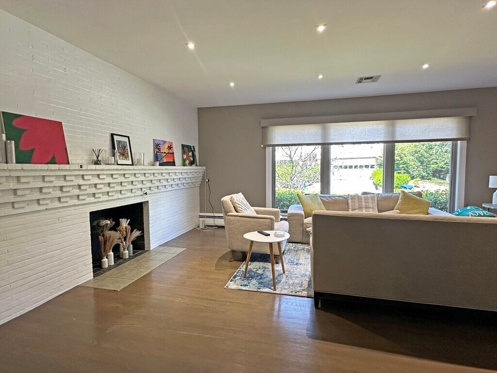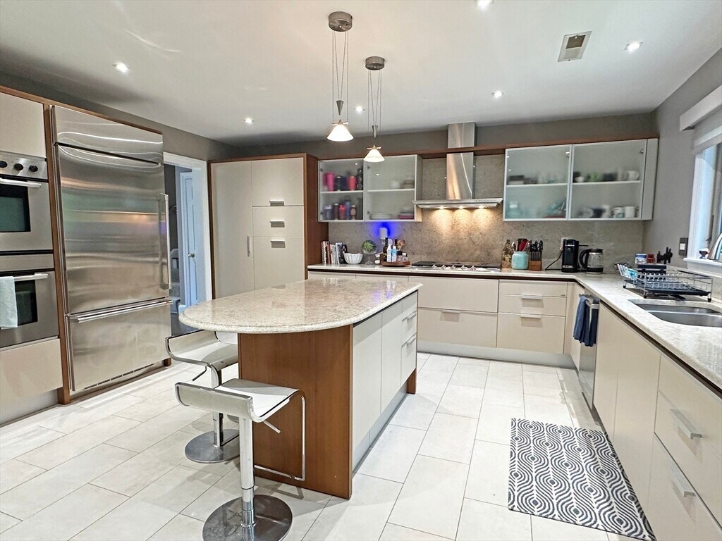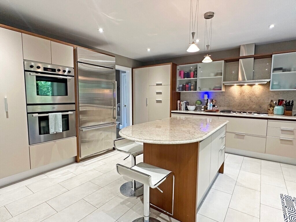 Very unique 1960s contemporary split level Ranch house in excellent location across from the Arboretum. This sun filled home is situated on a cul de sac & features 4 BRs,3.5 BAs with additional sun room & finished basement space. Main level includes LR with lots of built in storage & ornamental FP which leads to formal DR. Nice eat-in-kitchen is fully applianced w/ gas range,double wall ovens,dishwasher & disposal. Lots of cabinet storage & counter space! Glass doors lead out to the spacious sun room. Just a few steps takes you to the 2nd level which offers an en-suite BR,another full BA w/ double sinks & 2 additional BRs. Top floor has another spacious en-suite BR w/ sunny private deck for lounging & morning coffee. Finished basement gives even more storage & opportunity for home gym or office. Lovely fenced yard w/ space for a garden. 2 car garage w/ additional driveway parking. Solid house all around! Pets considered on a case by case basis. MLS# 73455147