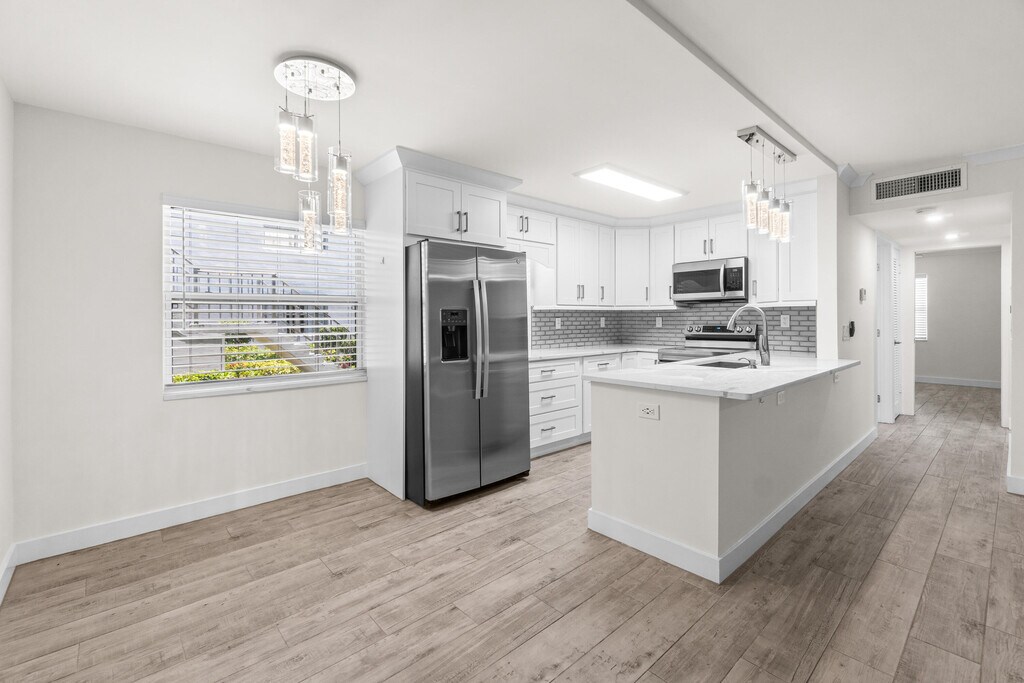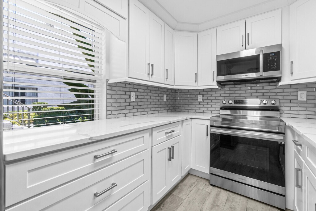 top of the line remodeled rental in kings point an active adult community 55+. Impact windows white shaker cabinets quartz beautiful accent wall fully remodeled bathrooms