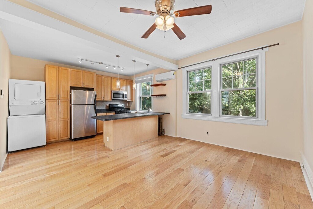 Vacant - Discover this inviting 2nd floor 2-bedroom apartment on a charming, quiet dead-end street. Spacious open-concept layout with ample natural light throughout. In-unit washer and dryer, 3 window A/C’s and ALL UTILITIES included. This prime location just a block from Boulevard East offers close proximity to NYC transportation, Lincoln Tunnel crossings, schools, parks, restaurants and shopping. Tenant Insurance required. One cat may be considered.