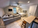 This delightful studio apartment,perched above the garage,offers both comfort and convenience. Inside,you'll find modern amenities including a stove,refrigerator with ice maker,dishwasher,washer,and dryer. Step outside and enjoy the beautiful fenced backyard with a fire pit complete with Adirondack chairs,a shared gas grill,and a welcoming porchperfect for relaxation or entertaining. The unit also features keyless entry,a separate renter's mailbox,and access to a shared garage space for storage. For added value,water and cable are included in the rent,along with internet. Small dogs are welcome; sorry,no cats.