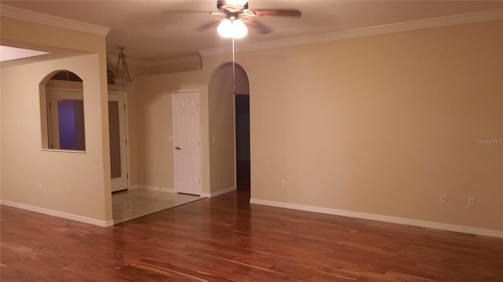 LOVELY POOL/SPA home with a lot of privacy nestled on CUL-DE- SACK Street in SALTWATER CANAL area& surrounded with gorgeous homes. This TILE ROOF house features the entry foyer with coat closet,formal dining and living room,tray ceilings,crown moldings,newer engineered hardwood floors throughout,custom paint walls,eat-in kitchen with custom cabinets overlooking covered lanai and fantastic screened pool with spa The primary bedroom offers glamming hardwood floor,walk-in closet and private bathroom with whirl tub and separate shower cabin,and glass sliding doors to spacious lanai & pool area. The guest full bathroom has direct access to the pool area. Storage attic over the 2-car garage with epoxy floor. Lawn irrigation system is on private WELL. The house is very bright and in immaculate condition. The complete pool service is included in monthly rent. Once a year the landlord provides roof tile & gutter cleaning. You are cordially welcome to view this charming sweet home in great location on very quiet street!. MLS# FC314706