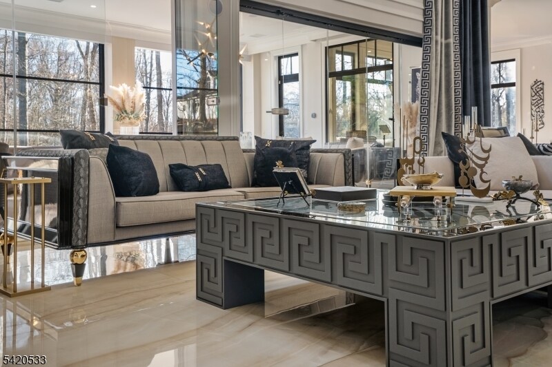 TURNKEY! LUXURY! FURNISHED! EXECUTIVE Versace-Themed SADDLE RIVER MANOR!! CUSTOM BUILT BY & FOR THE BUILDER, THIS HAS NEVER BEEN OFFERED FOR RENT BEFORE!! Prestigious CUL-de-SAC street! Impressive Limestone Exterior, 5/6 Bedrooms w/Oversized 1st FLOOR PRIMARY SUITE w/BOUTIQUE-STYLE LACQUER COATED CABINETRY CLOSET/Dressing Room. RADIANT Heated Porcelain Floors t/o, Incredibly OPEN FLOOR PLAN with TONS OF NATURAL LIGHT pouring through the Oversized Black Framed Italian Windows. BREATHTAKING EUROPEAN KITCHEN with VERSACE TILE BACKSPLASH, Quartzite Counters, SS Appliances & Breakfast Room OPEN to the 2 STORY GREAT ROOM with Decorator Lighting & FULLY GLASSED SOLARIUM w/Southern Exposure, that accesses the Spacious Bluestone Patio + LEVEL BACKYARD. 4 More BEDROOM SUITES upstairs + Bonus Rooms/6th BR, CLOSETS Galore and a Huge Finished Lower Level. Over 9500 s/f of finished living space. Ecobee Smart House System, LED Lighting, EFFICIENT HVAC System (5Z Radiant/7Z BB), No Water or Sewer Bill, Landlord Pays for Lawn Care!! Short term would be considered. Driveway parks approx 10 cars. Tenant responsible for utilities, cable, snow removal, 1st $200 ea repair & renter's insurance. Required: MLS Rental Application, Credit check, POF. Seller reserves right to interview.