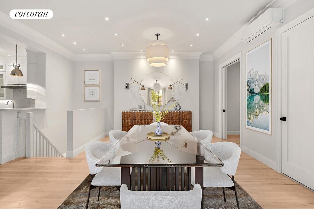 Perfectly positioned on one of the Upper East Side's most coveted park blocks, this newly reimagined duplex has been entirely transformed from top to bottom-combining prewar charm with the sophistication of a brand-new, modern home.Every detail has been meticulously considered in this full gut renovation, featuring high-end finishes, bespoke millwork, and a thoughtfully reconfigured layout that maximizes light, flow, and functionality. The upper level showcases a sleek, custom kitchen with premium stainless steel appliances, a wine fridge, and designer cabinetry opening to a versatile dining or sitting area. The serene primary suite offers a spacious walk-in closet, spa-inspired bath, and an elegant powder room.On the lower level, a dramatic living room framed by curved architectural windows opens directly to the private, landscaped garden-ideal for effortless indoor-outdoor entertaining. Two additional bedrooms, a full bath, powder room, and laundry area complete the residence. Modern comforts include central air conditioning and an in-unit washer/dryer.Set within an elegant townhouse between Fifth and Madison Avenues, just steps from Central Park, this one-of-a-kind home represents the best of classic Upper East Side character-completely reimagined for contemporary living and never before lived in.