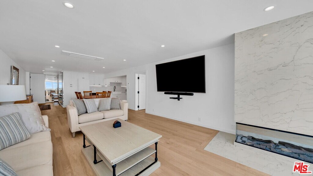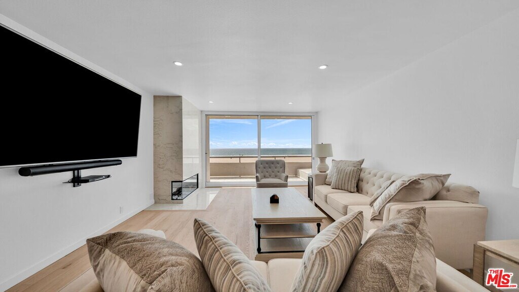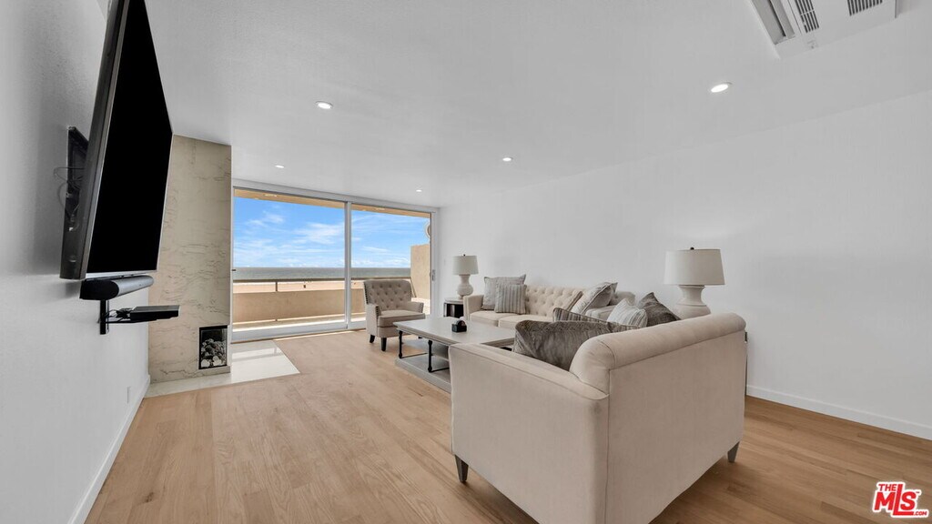 Newly Remodeled Super bright FRONT FACING 3bed 2bath single story unit on the beach, with unbelievable unobstructed breathtaking ocean views. Updated kitchen with stainless steel appliances and hardwood floors throughout. Living room has large front facing patio overlooking the sand and ocean. Primary bedroom is off the living room with an additional large patio overlooking the sand and ocean. Primary has a private hallway of double sided closets and a large walk-in steam shower. 2nd & 3rd bedrooms share a hallway bathroom with tub & shower. Other features include in-unit washer & dryer, AC, two side by side gated parking spots and an elevator in the building. Furnished or Unfurnished. PET FRIENDLY. MLS# 25597985
