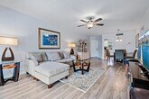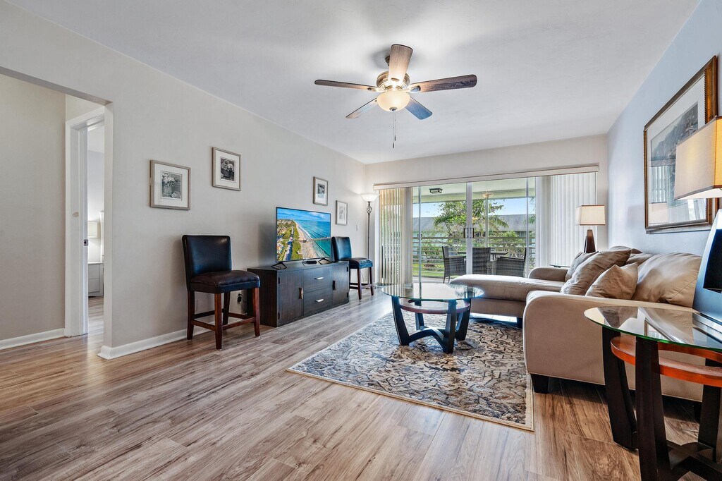 Adorable FULLY FURNISHED and newly RENOVATED rental! 6 Garden Street #205P in Tequesta Gardens is a SPACIOUS 2 bedroom 2 bathroom condo with over 900 square feet of living space and is located on the 2nd floor and the PERFECT place to live the south Florida lifestyle. It is located in a 55+ community in the quaint little village of Tequesta. Step inside your BRIGHT home and you will notice an AMPLE amount of natural light as well as the wood-like floors flowing effortlessly through your main living spaces. As you walk in, to your left you have your dining area and ahead of you, you will see your SIZABLE living space.