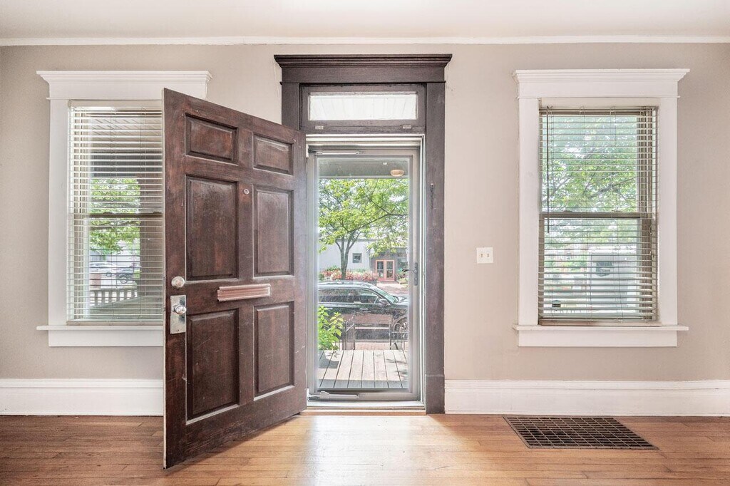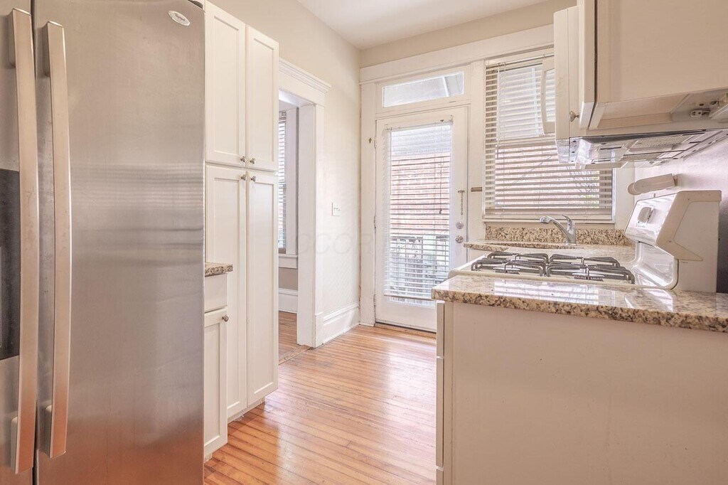 Location,Location,Location! Lovely Brick 2 Bedroom Condo steps to all German Village has to offer! You will love the large front porch. Loads of character. Original hardwood floors,beautiful woodwork & 9ft ceilings on 1st floor. Spacious Dining & Living Room w/updated fan,gas fireplace with tile surround & beautiful original mantle. Updated Kitchen features white cabinetry,granite counters,gas range,pantry & newer dishwasher. Spacious Primary bedroom with ceiling fan. Oversized Guest Bedroom. Updated full bath w/marble tile. Full basement full of possibilities! Charming brick fenced in rear patio offers privacy and space for relaxing & entertaining. Easy walk to neighborhood parks,hospitals,restaurants,shops,Downtown & freeway access! Monthly rent includes- lawn care,landscaping,snow removal & water. Must see!