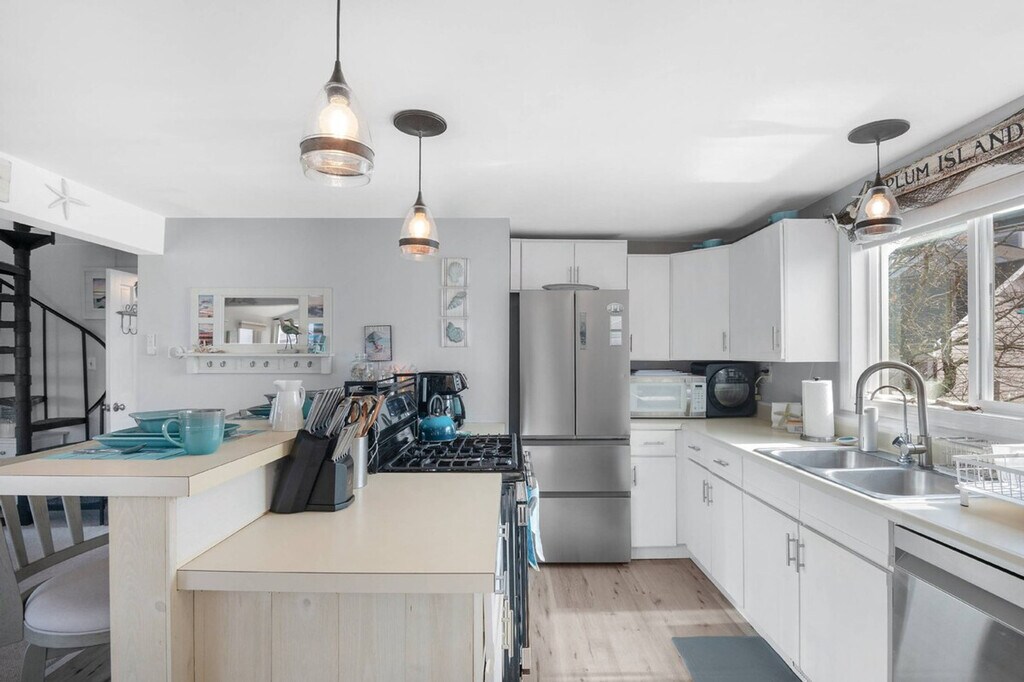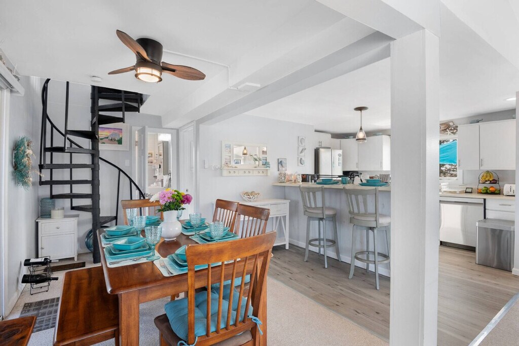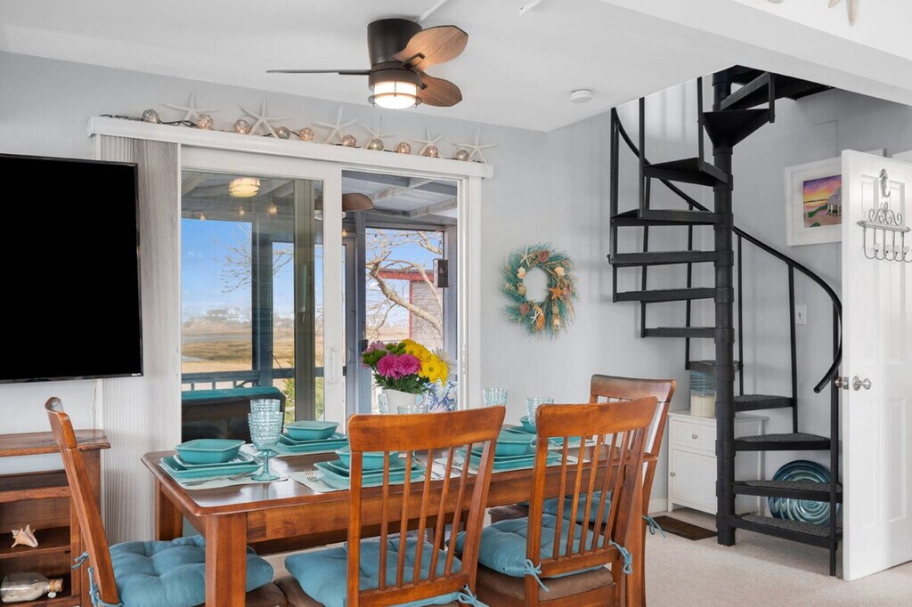 The advertised rate of $15,297/month is the lowest available price, based on a 1 month(s) stay with a move-in date of November 1, 2026. Rates vary depending on the duration of stay, season, and other parameters. For exact pricing and additional pricing components, please visit our website and enter your desired move-in and move-out dates. The rate is applicable when billed upfront; it can be higher if billed in multiple payments. Welcome to Island Sunrise, your perfect retreat for Newbury events and Plum Island adventures. Wake up to breathtaking water views as the sun sparkles off the bay, and start your day with a paddle in the serene waters. This charming home offers a well-appointed kitchen, a cozy screened porch, and a private yard on a tranquil dead-end road. From your backyard, a sandy beach path leads to Plum Island’s oceanfront beach, making it an ideal spot for couples or families to feel at home. Island Sunrise boasts a delightful outdoor space with a firepit, Adirondack chairs, and chaises on the upper deck, perfect for birdwatching or enjoying the water views. The screened porch provides a shaded retreat with a bistro set and couches, while the well-appointed kitchen includes a 5-burner gas stove, dishwasher, and French-door fridge. Indoors, relax in the cozy living room with a wrap-around sofa featuring individually controlled recliners, a large-screen smart TV, and a gas fireplace. The dining area offers stunning water views, and the gas grill is perfect for al fresco dining. Island Sunrise provides off-street parking for three cars. During the off-season, small to medium dogs are considered on a case-by-case basis with additional fees. Pets must be crated if left alone, and during peak season, the home has a strict no pets policy. Plum Island, a 6-mile long barrier beach south of Newburyport, offers a unique blend of natural beauty and recreational activities. Explore the Parker River Wildlife Refuge, home to nearly 300 bird species, or take a kayak or paddleboard tour through the marshes. Newburyport, just 35 miles northeast of Boston, is a historic seaport with vibrant boating, rich culture, and award-winning dining and shopping. Enjoy hiking, exploring downtown boutiques, or discovering the city's seafaring history. Smoking is strictly prohibited, and guests will be fined and immediately evicted for smoking or vaping in the home or on the property. No parties or events are allowed, and violations may result in eviction without a refund. Quiet hours are between 10 PM and 8 AM. Please respect the neighbors and follow all parking instructions. For those needing to work, Island Sunrise offers two dedicated workspaces with desks and chairs in both the bunk room and the guest room. High-speed WiFi ensures a seamless remote work experience, and you can close the door to keep work from intruding on your holiday. [SI]