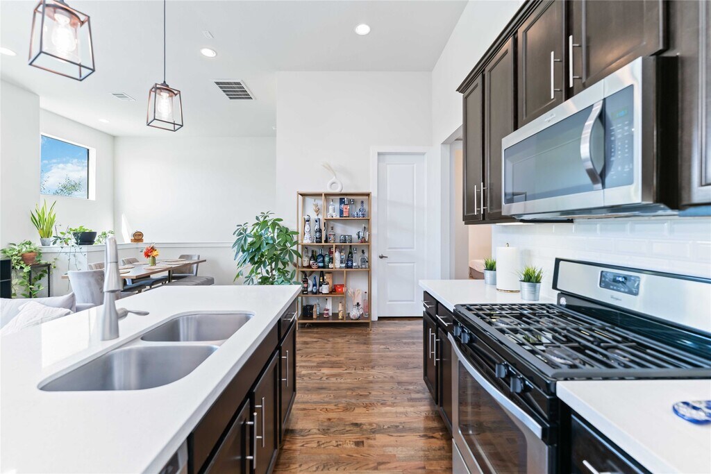 Welcome to this modern 3-bedroom,2.5-bath home in a gated East Downtown community,offering the perfect mix of comfort,convenience,and style. A bright,open-concept living space features soaring ceilings,rich hardwood floors,and abundant natural light,flowing into a sleek kitchen with quartz countertops,stainless steel appliances,and a large island for entertaining. The spacious primary suite boasts a spa-like bath with soaking tub and separate shower,while two additional bedrooms provide flexibility for guests or a home office. Enjoy easy living with water,lawn care,and appliances - refrigerator,washer,and dryer - all included. Five minutes from Downtown,top spots like Nancy’s Hustle,Tiny Champions,and Slowpokes,plus vibrant nightlife and green spaces. With quick access to major highways and the light rail,homes like this lease fast. Schedule your showing today before it’s gone! MLS# 25039410