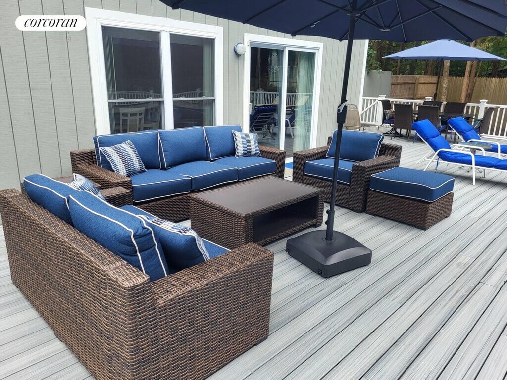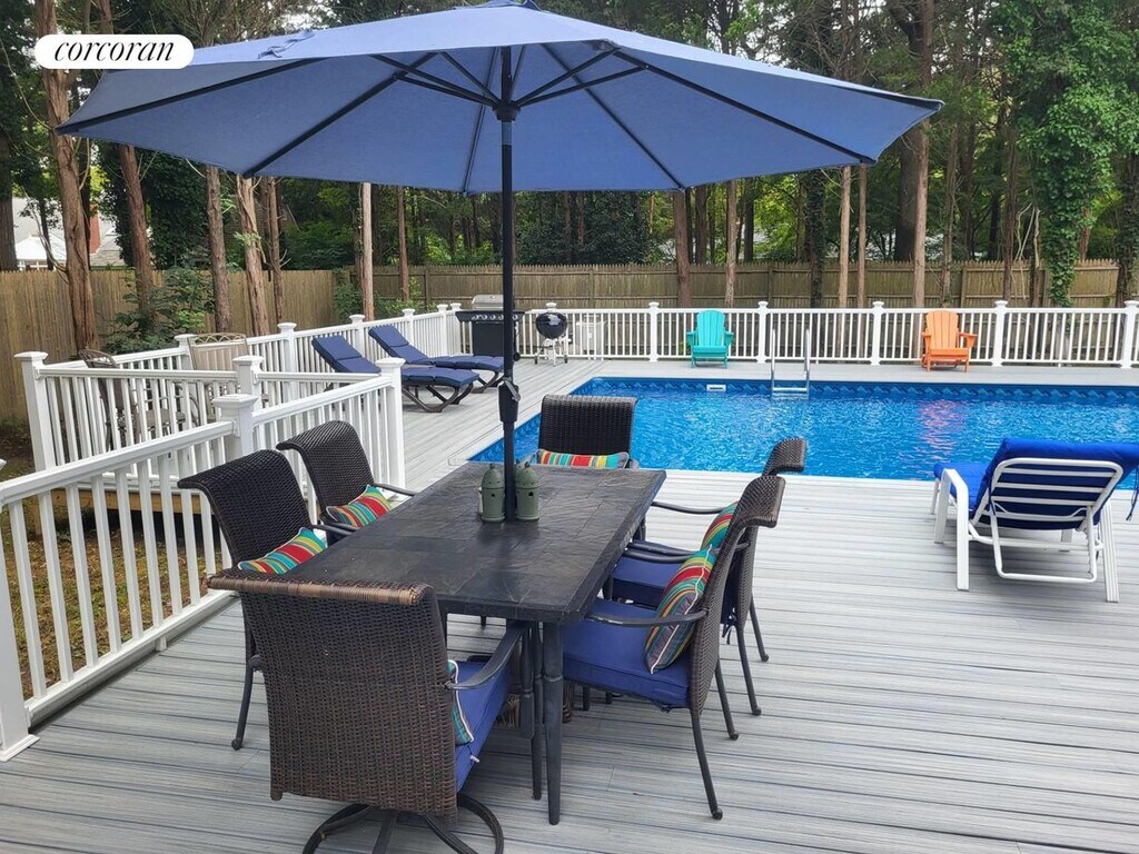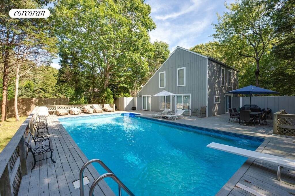 Four bedroom, 2 bath contemporary for rent in East Hampton. The 2-story open plan is cheery and bright, with vaulted ceilings and summery furnishings. There's a spacious deck with attractive patio furniture and inviting pool. Tenancy includes access to the Gardiners Bay community beach and marina.. This is a very attractive, affordable rental for your summer in the Hamptons.. [[Rental Registration # 24-279]]