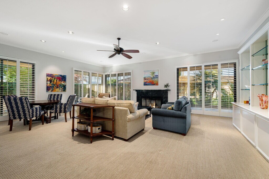Get ready for incredible views! This gorgeous fully furnished home offers an expansive private front gated yard with exquisite landscaping and breathtaking southern views of the San Jacinto Mountains. This beautifully updated home is nestled in the Iconic Springs Country Club in the heart of Rancho Mirage. A 3-bed,3-bath home featuring an impressive 2,950 square feet of living space is located on a very quiet cal-de-sac. Walls of glass frame the living room,allowing an abundance of natural light to flood the high-ceilinged space. The kitchen has been thoughtfully opened up to the living area,creating a seamless flow ideal for entertaining. With granite countertops,custom wood cabinets,and a bar-height counter with seating,this kitchen is a chef's delight featuring designer stainless steel appliances and a large pantry that further enhances its functionality. The spacious primary suite offers numerous closets and a versatile seating area,currently serving as an office but easily adaptable into a gym or peaceful retreat. Indulge in the spa-like primary bathroom,complete with a large soaking tub,double vanities,and an expanded walk-in shower. Each room features updated sliding doors that open to beautiful private outdoor spaces,providing multiple dining and seating areas to enjoy the serene surroundings. The second guest bedroom is equally spacious,complete with its own en-suite bathroom. Amenities include a remodeled clubhouse,two restaurants,fitness center,tennis courts,Pickleball,Bocce Ball,and a vibrant social scene. 24-hour guard gated community. Avaliable January-May 2026 MLS # 219139933