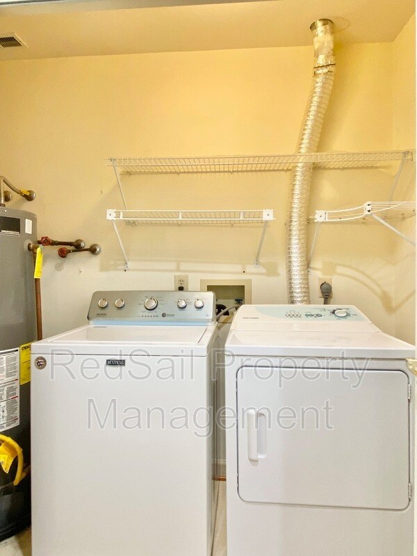 Welcome to this spacious 3 bedroom, 2.5 bathroom home offering approximately 2,400 sq. ft. of comfortable living space. The inviting living room features vaulted ceilings that create a bright, open feel and flows seamlessly into the dining area and kitchenperfect for everyday living and entertaining. The primary bedroom is conveniently located on the first floor and includes an attached ensuite bathroom and walk in closet. A half bath is also located on the main level for added convenience. Upstairs, youll find two additional bedrooms, a full bathroom, and a versatile flex/sitting room that can be used as an office, playroom, or additional lounge space. Additional features include washer and dryer included, new carpet being installed, a two-car garage, and a beautiful back deck overlooking a yard that backs up to the water, providing a peaceful outdoor setting to relax or entertain. Dogs are welcome, no cats please. This home will be available March 26th. HOA documentation can be provided as requested, if applicable. Please visit our direct website to be added to the waitlist, to review qualifications, or to apply. Minimum 1 year lease agreement is required.