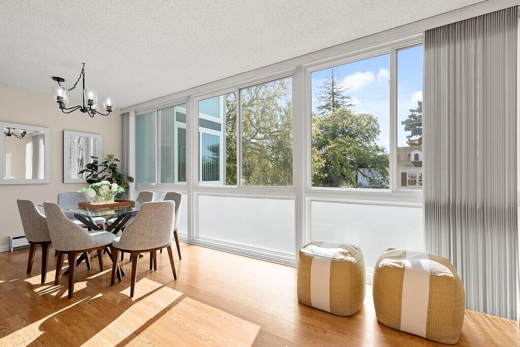 Welcome to 6 Seville #202, a bright and inviting 2-bedroom, 1-bath condominium in San Mateos highly desirable Aragon neighborhood. This spacious home features soaring high ceilings and an abundance of large windows, filling the living and dining areas with natural light and creating an open, airy ambiance. The efficient layout offers comfortable bedrooms with ample closet space, a well-appointed bathroom, and seamless flow throughout. Perfectly positioned across the street from beautiful Central Park, the home provides a serene setting while being just steps from downtown San Mateo. Enjoy a highly walkable lifestyle with restaurants, cafés, shops, the movie theater, and the train station all within a short stroll, offering unmatched convenience for commuters and families alike. The location also benefits from proximity to excellent schools, making it an exceptional choice for those seeking both lifestyle and long-term value. Combining comfort, location, and community, this home is an outstanding opportunity in one of San Mateos most sought-after neighborhoods.