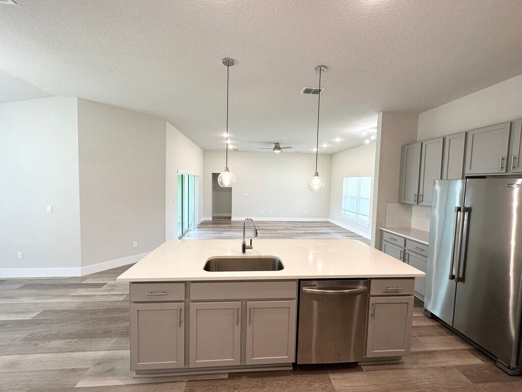Gorgeous 3 bedroom 2 bathroom newly built home in the desirable Seminole Woods subdivision surrounded by nice homes. Bright and spacious, open floor plan with vinyl plank flooring, LED lighting throughout the house, stainless steel appliances, quartz countertops in kitchen and bathrooms, split floor plan, double sink vanity in master bathroom, walk-in shower and walk-in closet, garage door opener, contemporary ceiling fan in the living room and more. Conveniently located near schools and parks, biking/jogging trails, dining, shops, with an easy access to US-1 and I-95. Ready for occupancy January 1st, 2026!