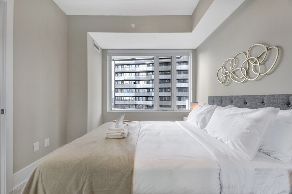 Discover the incredible new condo at The Well, a highly sought-after location in Downtown Toronto. This European-influenced urban space offers luxury retail, a food hall, markets, restaurants, and entertainment venues, making it an ideal place to feel at home. The fully furnished unit includes a fully equipped kitchen, in-suite laundry, a queen bed, and an in-suite workspace with a desk and chair. Relax and unwind with the smart TV and high-speed Wi-Fi, ensuring you have everything you need for a comfortable stay. Enjoy access to state-of-the-art fitness facilities and a rooftop pool, providing you with excellent amenities to enhance your living experience. This condo is professionally managed by a trusted partner, ensuring a seamless living experience. The in-suite workspace is equipped with a desk and chair, perfect for those who need a dedicated area to work from home. [SI]