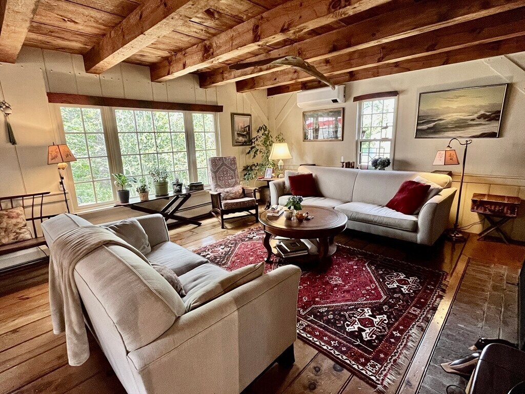 UNFURNISHED YEAR ROUND RENTAL- Welcome to this beautifully maintained home,full of charm and character. Featuring wide plank wood floors throughout,an open-concept living and dining area,and a finished basement bonus room with laundry,this home offers both comfort and functionality. Surrounded by lush gardens,you’ll enjoy peaceful outdoor living with a front and back deck as well as a private patio—perfect for relaxing or entertaining. A detached garage provides parking for one car. Don’t miss this unique opportunity to lease a home that blends timeless charm with modern convenience. MLS# 73431239