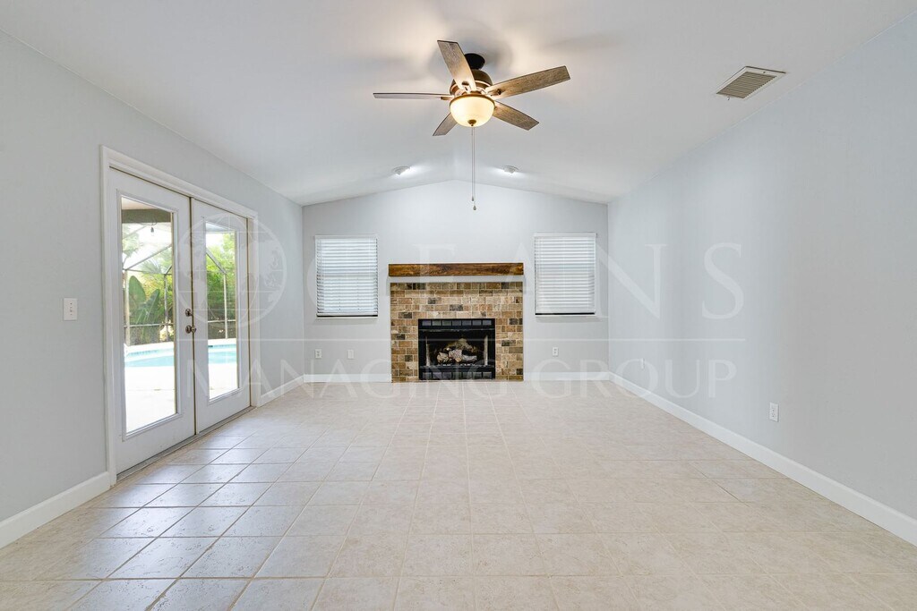 Discover a rare opportunity to lease a spacious four-bedroom, two-bath home offering over 3,000 square feet of living area. Located on a peaceful cul-de-sac, this single-story brick house combines elegant comfort with top-notch privacy, all within walking distance to both the beach and the river. The thoughtfully designed split floor plan features expansive living areas and generously sized rooms, creating a seamless flow for both everyday living and entertaining. Anchoring the family room is a newly installed electric fireplace, offering warmth and ambiance. At the heart of the home, a spectacular screened lanai opens to a sparkling pool and jetted soaking spa, with a large partially covered area for year-round enjoyment. Beyond the pool, the property backs onto a lush wooded area, providing an atmosphere of serenity and seclusion. Highlights include: Sophisticated single-level layout with oversized rooms Crystal clean pool and spa with expansive screened enclosure Two-car garage with ample storage space Quiet cul-de-sac setting with no through traffic Ideal location within easy walking distance to the beach and river This rare coastal retreat combines the privacy of a rear wooded backdrop with the lifestyle of a premier beachside residence. A truly remarkable home for those seeking both elegance and ease. Homes like this don't come up often, so move quickly. Lawn and pool care are included. Sorry, no pets allowed. All Oceans Luxury Realty residents are also offered the Resident Benefits Package (RBP) for an additional $50.00/month which includes renters insurance, HVAC air filter delivery (for applicable properties), credit building to help boost your credit score with timely rent payments, $1M Identity Protection, our best-in-class resident rewards program, and much more! Flood insurance is purchased through NFIP (National Flood Insurance Program) and is managed by FEMA (Federal Emergency Management Agency). It is a separate insurance policy not provided by Second Nature. More details upon application. $150.00 Administrative Fee