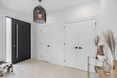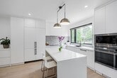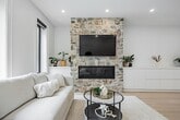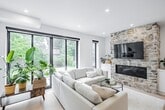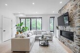 Indulge in lakeside luxury at this newly built custom property, where contemporary design meets serene natural beauty. Bright, expansive floor-to-ceiling windows frame panoramic views, flooding the space with natural light. The main floor boasts an open-concept layout, adorned with bright, contemporary decor & high-end finishes throughout. With five bedrooms, including a primary room nestled in the loft, comfort & privacy abound. The modern kitchen boasts top-of-the-line appliances & sleek finishes, while the living room features a striking stone wall with a fireplace, perfect for cozy evenings. Convenience meets sophistication with remote-controlled blinds on the main floor & automatic blinds upstairs. A separate entrance leads to a spacious basement, while the large backyard beckons for outdoor enjoyment. Dual furnaces & AC units ensure climate control throughout. This residence harmoniously blends luxury, comfort & natural beauty, offering a serene retreat near the water's edge.