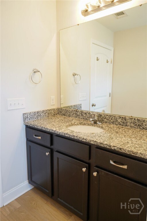 This stunning residence features 5 bedrooms,3 bathrooms,a separate office,a large mudroom,a formal dining room,& a screened patio. Step inside to find LVP flooring throughout the downstairs,encompassing the foyer,great room,study,kitchen,mudroom,& dining room. The dining room features arched openings & wainscoting,while the office/study has French doors. The kitchen is equipped with granite countertops,stainless steel appliances,a large island,& a tile backsplash. The oversized mudroom offers versatility. Upstairs,the master features a sitting area and two walk-in closets. Three additional guest bedrooms and a full bathroom complete the upper level. The fifth bedroom and third full bath are conveniently located downstairs. Enjoy and relax on your screened porch,overlooking the fenced backyard. The Palms Resort-style amenities include a lake,beach,fitness center,and playground. With easy access to I-16,Hwy 204,I-95,New Hampstead High School,and the Hyundai Plant.