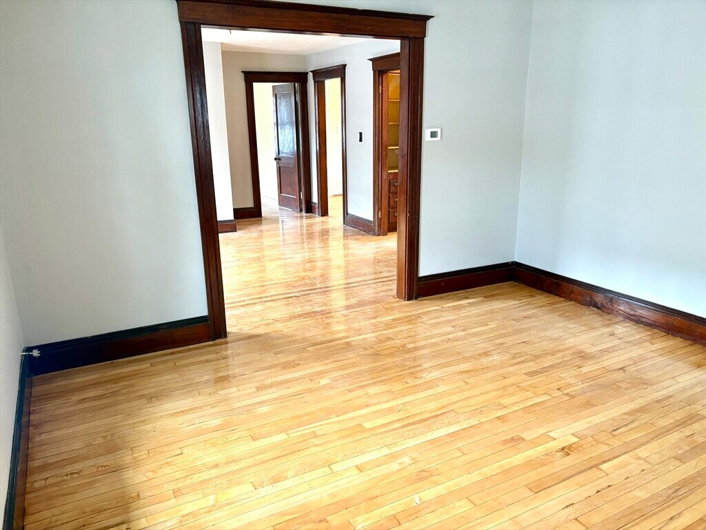 Lovely 2 bedroom apartment on second floor of two family. Located minutes from commuter rail and downtown Wakefield,Common and Lake. Quiet westside neighborhood. Beautiful maple floors,clean,painted and updated. Features livingroom,formal diningroom,2 bedrooms,kitchen and bath. Also an exclusive use enclosed front porch and a walk up attic for storage. Central A/C,Gas heat,and updated windows. Use of separate laundry connections in the full basement (tenant supplies their own washer and dryer). Updated bathroom and kitchen. Good pantry space off kitchen. Approx 950 sq ft of living. Offstreet parking includes two spaces with a 1 bay garage. Available May 1. Sorry,no smokers or pets and good credit required. No broker fee. MLS# 73500682