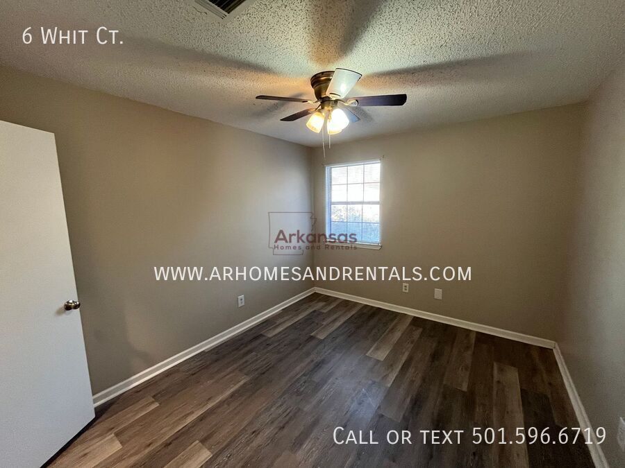 6 Whit Ct. Jacksonville, AR 72076 Don't miss out on the opportunity to make 6 Whit Ct. your new home. Contact us at: today for more information on leasing options. You can apply on our website: Features: ***1/2 Off First Month Rent!!!*** - Granite countertops - Electric stove - Stainless steel appliances - Dishwasher - Microwave - Refrigerator - Large backyard - Patio - Gas water heater - Ceiling fan - Central heat and air (gas) - Driveway provides off-street parking - Washer and dryer connections Ceiling Fan Central Heat And Air (Gas) Driveway Electric Stove Gas Water Heater Granite Countertops Large Back Yard Washer And Dryer Connection