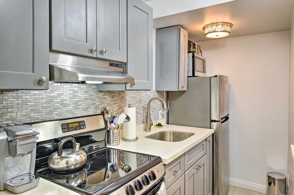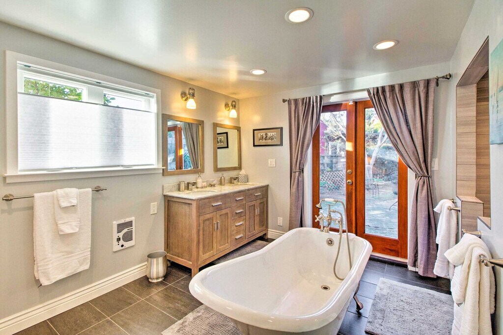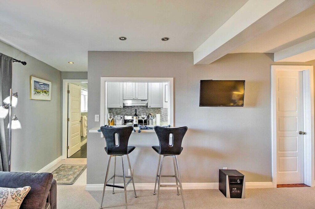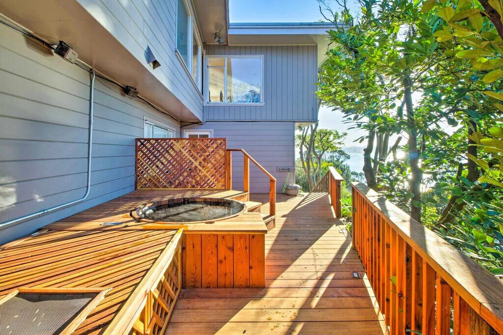 Feel at home in this newly renovated Point Richmond studio, perched on the shores of San Francisco Bay. 'Bay Surf Sanctuary' offers all the essentials and hotel-style luxuries. Exterior stairs are required to enter this single-story studio. This studio features a smart TV, an electric fireplace, and complimentary Wi-Fi. The well-equipped kitchen includes stainless steel appliances, a Keurig coffee maker, a breakfast bar with seating, dishware, flatware, and pots and pans. Enjoy the complimentary robe and luxurious bathroom with a double-basin sink, clawfoot tub, and double shower head. Relax outdoors on the patio with access to the cedar hot tub on the upper deck, a lush garden, and a gas grill, all while taking in sweeping views of San Francisco Bay. Parking is available on the parking pad for one vehicle. You'll be California dreaming at this vacation rental, located on the shores of San Francisco Bay. Sunbathe at the beach, hike along the coast, or hop on the BART for carefree transportation to top attractions. Visit Golden Gate Park, Alcatraz, and Pier 39, or take a day trip to Napa or Sonoma Valley! Quiet hours are observed from 10:00 PM to 6:00 AM. The homeowner and their 2 dogs live on-site in a completely separate unit and may be present during your stay. The property is not suitable for young children, as there is a very steep drop-off at the edge of the property. Smoking, pets, events, parties, and large gatherings are not allowed. Guests must be at least 28 years old to book. [SI]