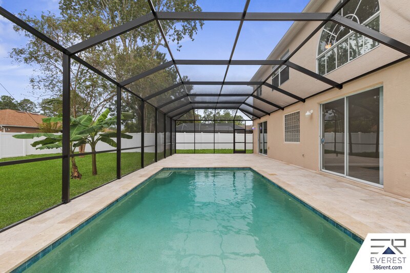 THIS NEWLY UPDATED, FULLY FENCED 4-BED + LOFT, 2.5-BATH HOME COMBINES ELEGANT FINISHES WITH MODERN SPACIOUS LAYOUT. ENJOY THE WARM OPEN KITCHEN WITH UPGRADED STAINLESS-STEEL APPLIANCES, LUXURY QUARTZ COUNTERTOPS, A LARGE WRAP AROUND COUNTERTOP, AND CONTEMPORARY LIGHTING THROUGHOUT, AND LIGHT BROWN CABINETS. LIVING ROOM, EAT IN KITCHEN, FORMAL DINING ROOM, AND AN UPSTAIRS FAMILY ROOM. SEPARATE LAUNDRY ROOM, 2 CAR ATTACHED GARAGE. ACCESS TO THE POOL FROM THREE DIFFERENT GLASS SLIDING DOORS. A COVERED PORCH AND A PRIVATE FULLY FENCED BACKYARD. THIS SPACIOUS TWO-STORY HOME OFFERS MODERN COMFORT WITH ROOM TO MOVE AROUND. THE MASTER SUITE BOASTS A DOUBLE-SINK VANITY, WALK-IN SHOWER, WALK-IN CLOSETS, AND A BUILT-IN OFFICE SPACE. THE HOME IS VERY SPACIOUS AT 3757 TOTAL SQ. FT. (2879 LIVING SQ. FT.). CONVENIENTLY LOCATED NEAR TOP SCHOOLS, SHOPPING, THE TOWN CENTER, BEACHES, MAJOR HIGHWAYS, DAYTONA BEACH, AND HISTORIC ST. AUGUSTINE. SOLID LANDLORD. AVAILABLE FOR IMMEDIATE MOVE-IN. POOL CARE IS INCLUDED IN THE RENT $3300 ON 3-YEAR LEASE $3400 ON 2-YEAR LEASE $3500 ON 1-YEAR LEASE