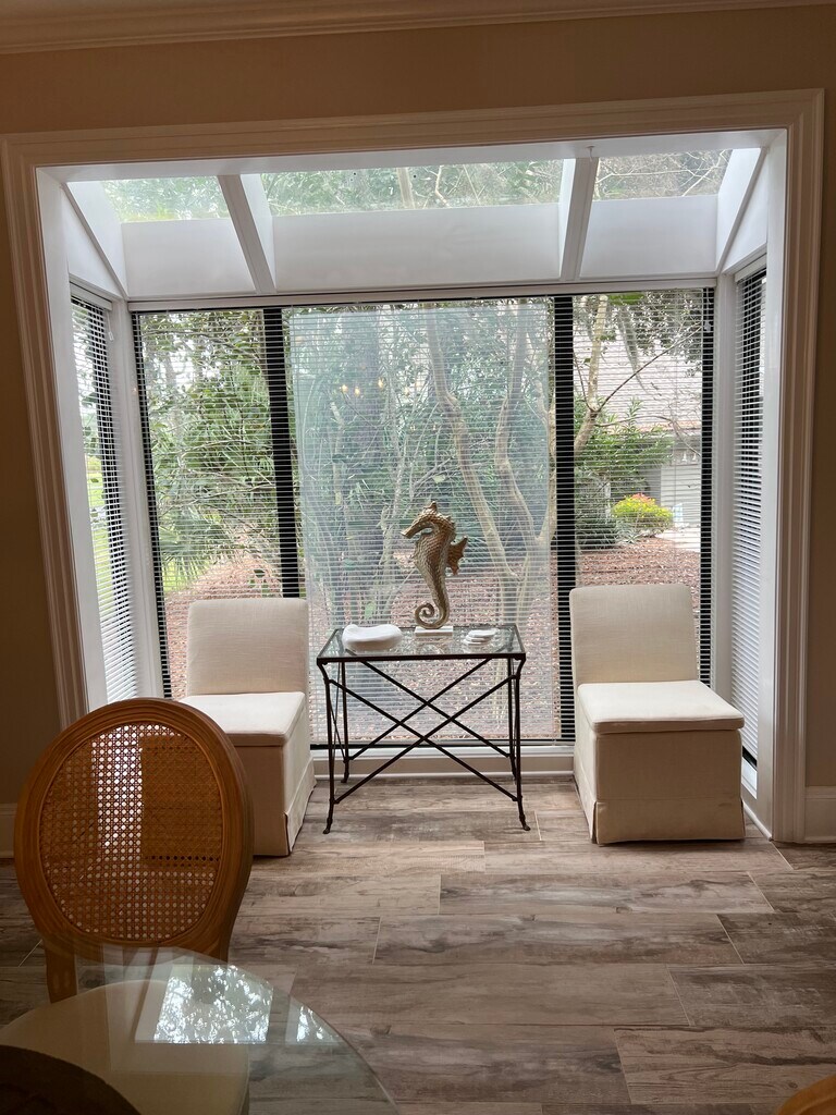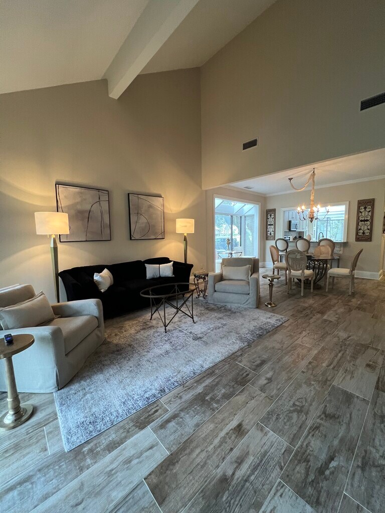 Palmetto Dunes Oceanfront Resort Villa with private beach access. The one level floor plan is light, bright with beautiful views from every room! Located on the George Fazio 12th tee box. A lovely open concept two bedroom, two bathroom, large kitchen, dining room and spacious living room with vaulted ceilings. Great for gathering and watching the game together! The primary bedroom has a large walk in closet, an en-suite with a walk in shower, patio doors you can step right onto the patio with beautiful golf course views. The kitchen is remodeled with stainless appliances, fully equipped, a breakfast bar, and gorgeous views of the Fazio course. Enjoy your morning coffee, lunch, or dinner on the quiet patio overlooking bird island. The dining room has seating for six with floor to ceiling windows with views of old oak trees and Spanish moss. Also, you will have access to top notch private clay tennis courts, private pool overlooking the 11 mile lagoon. Perfect blend of comfort, elegance and upscale living. Being an end unit, it is quiet, peaceful and tranquil. With maximum privacy and only a one minute drive or five minute bike ride to the beach. Date Available: Nov 1st 2025. $3,975/month rent. $3,975 security deposit required. Please submit the form on this page or contact Tami Russo at to learn more. This property is managed by a responsible landlord using Avail landlord software.