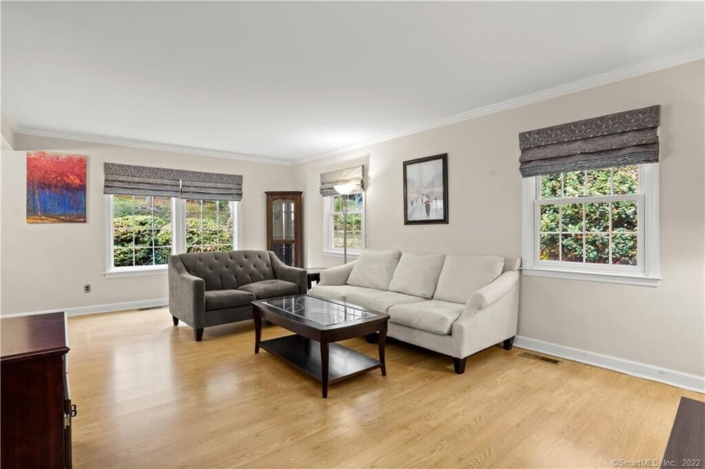 Call for Availability - Sunny 3 bedroom 2.5 bath unit at Greenwich Hills offers fully equipped kitchen, dining area with slider to peaceful patio to enjoy the outdoors and spacious living room completes the main level. The second level offers a primary bedroom with full bath plus two additional bedrooms with Marble hall bath with whirlpool. Lower level has spacious laundry room and family room. Furnished (furniture pictured in listing will stay) or Unfurnished. Two unassigned parking spaces included, as well as, pool and tennis. No Smoking and No Pets allowed. Tenant must follow Greenwich Hills Rules. Unit is being freshly painted. MLS# 24166893
