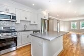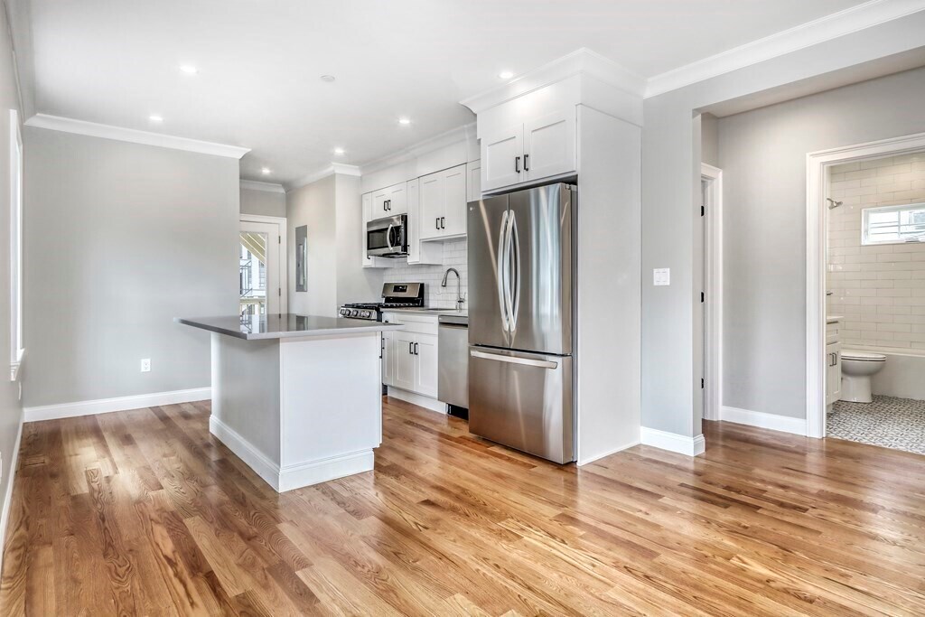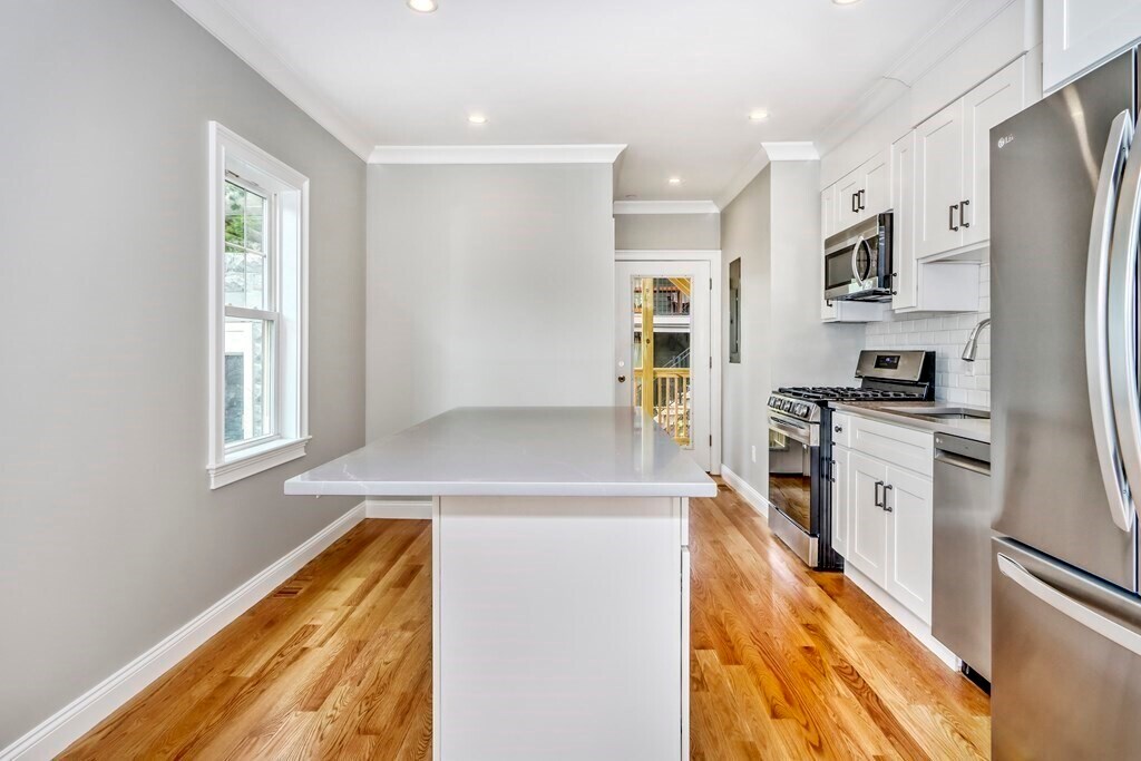 2nd floor new construction condo quality renovations on Prospect Hill! ****2 beds,2 baths****with garage parking! Open floor plan with high ceilings,crown moldings,open + airy floor plan with amazing kitchen with island,quartz countertops with tile backsplash,SS appliances,gas cooking,beautiful custom cabinetry,main bedroom with private bath + gorgeous shower. Great closet space,in-unit laundry,easy access to covered deck and stairs to yard. Hardwood floors throughout this exceptional unit. Situated on Prospect Hill with tree top views! Great neighborhood and convenient to Roslindale Square with trendy restaurants,shops,The Village Market and Saturday Farmer's market,close to commuter rail and buses on Washington street to Forest Hill T Station. New Gas heat + Central Air,new windows and fully insulated for efficiency and low utility expenses! MLS# 73392727
