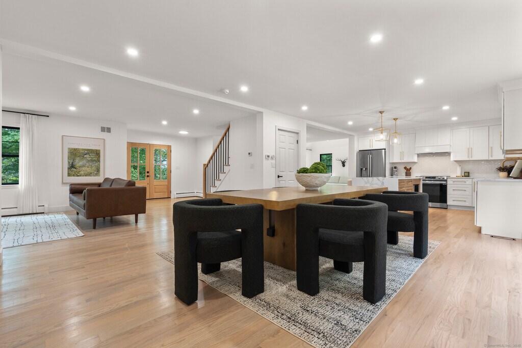 Call for Availability - Ready for immediate move in - COMES FULLY FURNISHED and equipped with everything you need to start living. Enjoy the privacy and comfort of this fully furnished 4-bedroom, 3.5-bath retreat set on 1.87 wooded acres in Colchester. Surrounded by trees, the home feels like a modern treehouse, with sunlight filling the rooms-morning sun in front and sunsets in back. Inside, hardwood floors run throughout and every detail has been stylishly remodeled. The chef's kitchen features quartz countertops, solid wood cabinets, a farmhouse sink, custom wood hood, island with seating, and French doors that open to a deck overlooking the serene backyard. The first floor includes two dining areas, a cozy living room with fireplace, a play room with pool table, half bath, and a private office with vaulted ceilings and deck access. Upstairs, the primary suite offers a spa-like bath with soaking tub, shower, and closet, plus a private loft with skylights and an additional full bath. Three more bedrooms, and a full bath with laundry. Step outside and enjoy 2 acres of land or take a quick walk to the Air Line Trails just minutes away. Conveniently located near restaurants, shops, a new school, and just off Route 2, with easy access to Glastonbury, Hartford, Bradley Airport, and Mohegan Sun. Available for monthly rental, this fully furnished home is ideal for extended stays, corporate rentals, relocations, or anyone seeking a peaceful retreat with modern comforts in the heart of Connecticut MLS# 24136782