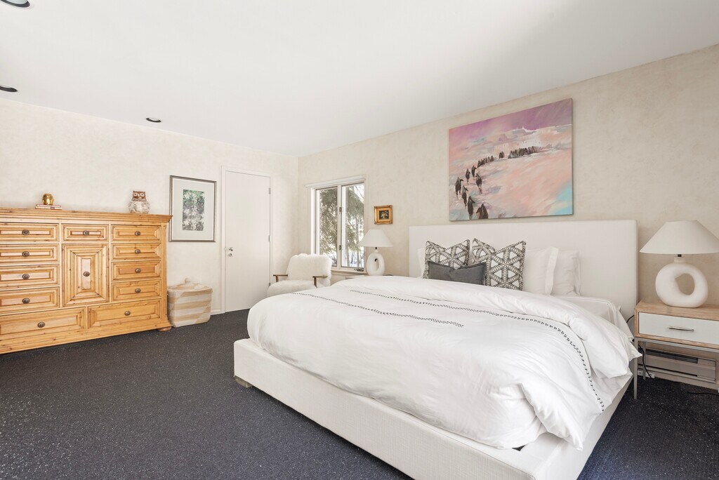 This light and bright East Aspen home is a great family retreat. Its large open concept living room and dining room has a soaring beamed ceiling and is surrounded by three sides of tall sliders and windows. From the living room, go outside onto the wrap-around deck, furnished with lounge chairs, an outdoor dining table, with a Blackstone grill + traditional grill. The eat-in kitchen with new appliances is just steps away. Five bedrooms and bathrooms provide plenty of room for your family and guests. The upper-level extra-large ensuite bedroom is connected to a den with a large flatscreen TV, which makes this area a great kid hang-out. This Knollwood home is on Northway Drive, which has virtually no traffic and is just one mile from downtown Aspen. Call Dial-A-Ride to schedule a pickup in front the home day and night or ride your bike on the bike path that goes directly to town. This great spacious home is the perfect retreat for your family or group! STR# 013169