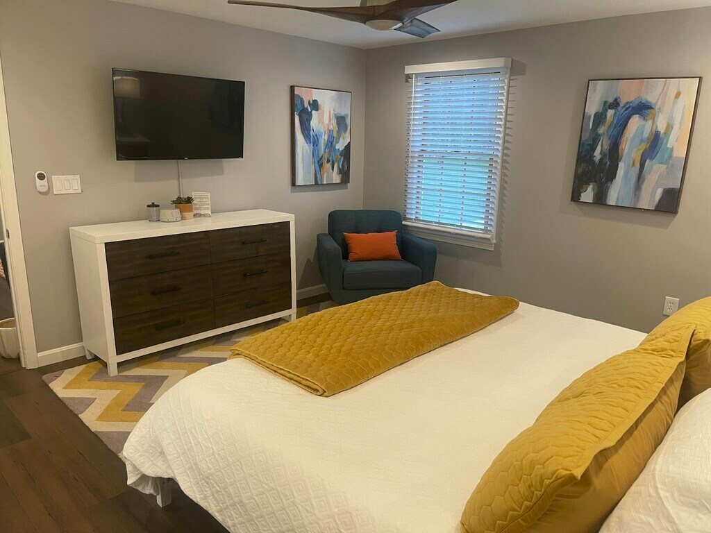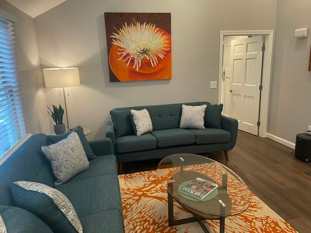 Fully Furnished 2 bedroom, 1.5 bath, first floor apartment perfect for long term corporate traveler. Available for 1-12 Month lease. Private entrance and driveway provides everything you need to enjoy your home in the countryside. Centrally located between Worcester and Leominster, approximately 18 minute drive to Wachusetts Mountain State Park and Ski Area and easy commute to Worcester. There are great trails for hiking, restaurants, orchards & antique shops. You wont have to worry about parking, as you will have a dedicated driveway to use. When you enter the unit, you will notice the open kitchen/dining area, which features a newly updated (fully stocked) gourmet kitchen with eat in island, featuring new appliances and many kitchen essentials (I.e air fryer, instapot) for whipping up those recipe favorites, a living area with plenty of seating around a Roku TV, and a dining area. Open the sliding door of the first bedroom to find a private exclusive outdoor area with more seating and a charcoal grill. Utilities (electricity, water, sewer, trash) and WiFi included. We provide access to Hulu + Live TV on all the Roku TVs in lieu of cable TV. The bedrooms features a queen and king size bed and newly updated ensuite full bathroom. The entire unit is cooled by a central A/C system, which will keep you cool on those hot summer days and nights. Other amenities include contactless and keyless entry, WiFi, Roku TV with Hulu + Live TV, premium linens and bath towels provided, and the bed will be made upon arrival. The unit is also dog friendly for well behaved animals (maximum of 2 small dogs or one large dog).