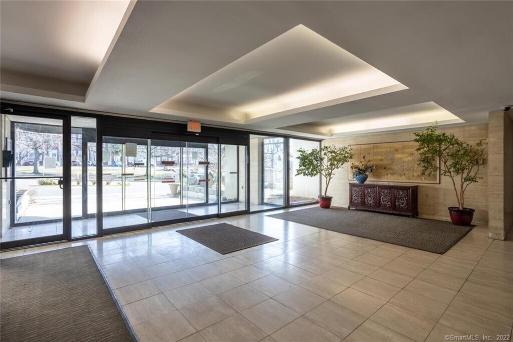 Call for Availability - Top floor end unit two bedroom and two full baths. Newer kitchen with granite counter tops and breakfast bar. Spacious living room and open dining room area with hardwood floors throughout. Common charge includes hot water, heat and electricity. Coin laundry room, exercise room and sauna in the lower level. Comes with an assigned garage parking space. 24 hour concierge. Conveniently located close to shops, restaurants, theaters, library, shopping mall, close to I-95. Less than an hour commute to NYC on train. MLS# 24137326
