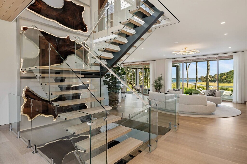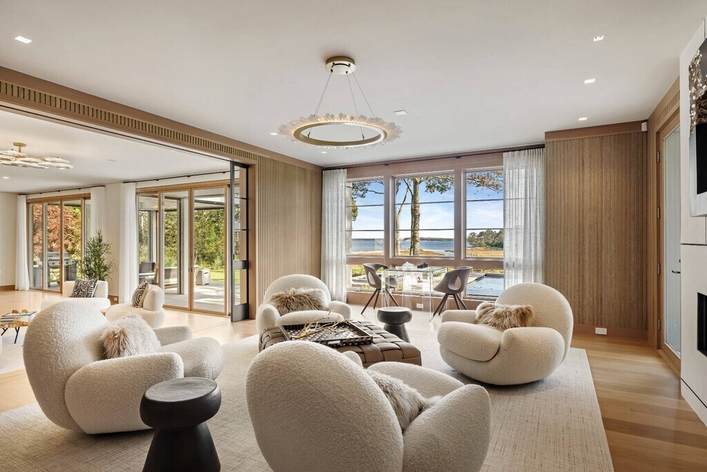 Experience luxury living in this newly constructed North Haven modern estate, set on 3.25 acres with breathtaking harbor views. Interior design by the renowned Melanie Roy, this estate offers a state-of-the-art chef's kitchen with a dining area overlooking the water, two stunning living rooms, and a second primary bedroom on the main level. The grand entrance is spectacular, featuring a floating staircase and an elevator. Outside, enjoy a 20x50 waterside saltwater heated gunite pool and jet spa, a spacious lounge area with magnificent views, and a path leading to the water for paddle boarding and kayaking. The property also includes a detached studio/office/yoga room with a full bath and an electric screened-in porch with panoramic waterfront views. The second level boasts four spacious ensuite bedrooms, including a grand primary suite, all with terraces and beautiful vistas. The lower level is perfect for entertainment with a large flatscreen TV, sound system, a game room with a pool table, an additional full bedroom with bath, a gym, and a 5-person sauna. With a 3-car garage and ample parking in the front courtyard, North Haven Manor also offers resident pathways to the beach and open water. Boat mooring is available, also great for kayaking and paddle boarding. Located just minutes from the village of Sag Harbor, this premier rental listing is available for THE US OPEN in JUNE, offered exclusively through Sotheby's International Realty. [[Rental Registration # R-2025-0006]] EH RR #: R-2025-0006 Rental Terms: Two Weeks: $110,000 June: $150,000