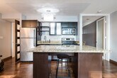 Welcome to Malibu Harbourfront, a sleek 32-storey residence at Bathurst and Lakeshore. Designed by Malibu Investments and inspired by California living, this tower combines curved glass, steel, and a modern podium to create a bold architectural statement on Toronto’s waterfront. Home to suites with urban and lake views, the building is perfectly located steps from both the harbour and the downtown core. This spacious two-bedroom, two-bathroom suite offers the ideal split-bedroom layout, with both bedrooms featuring private ensuites for maximum comfort and privacy. The open-concept living and dining area is framed by floor-to-ceiling windows, filling the space with natural light and leading out to a private south-facing balcony. The kitchen is equipped with full-size stainless steel appliances, a generous island, and plenty of storage — perfect for everyday living and entertaining. Additional features include hardwood floors throughout, in-suite laundry, one parking space, and one locker for your convenience. Life at Malibu Harbourfront means access to a full suite of amenities designed for work, wellness, and leisure. Stay active with a fully equipped gym, swim under natural light in the indoor pool with jacuzzi, or relax on the rooftop terrace with BBQs and tanning areas overlooking the lake and skyline. Entertain guests in the party and billiards rooms, book a guest suite for visitors, or enjoy the comfort of 24-hour concierge and security. Bike storage and visitor parking ensure every detail of modern urban living is covered. Positioned at the gateway to Toronto’s waterfront, the building offers unmatched convenience. The TTC streetcar stops right outside, while Union Station is a short ride away. Everyday essentials like Loblaws, Shoppers Drug Mart, and Starbucks are just across the street. Walk to Coronation Park, the waterfront trail, Canoe Landing Community Centre, or head to the Entertainment District for restaurants, theatres, and nightlife. Major landmarks including Rogers Centre, Scotiabank Arena, BMO Field, and Billy Bishop Airport are all within walking distance, making this one of the most connected addresses in the city.