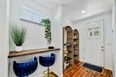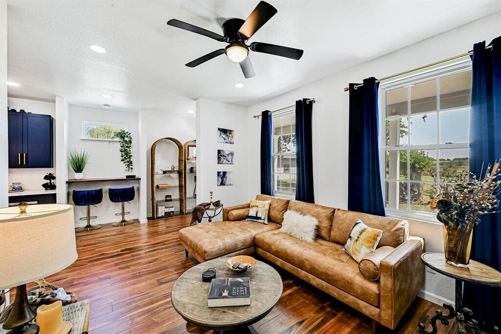 Fully furnished or unfurnished, short-term and long-term availability with all utilities included: Electricity, water, yard maintenance, trash pickup, and Internet. Beautifully designed 2024-built modern country cottage, where charm meets convenience. The main level offers a thoughtfully designed layout featuring a kitchen equipped with high-end stainless steel appliances, custom cabinetry with open shelving, a colorful glass chandelier, and a breakfast island perfect for casual dining. The adjoining living area is filled with natural light from well-placed windows, complemented by recessed lighting, a dry bar, and highlighted by an elegant designer staircase. A convenient half-bath is also located on the main level. Upstairs, the owner’s retreat provides an inviting sanctuary with large windows framing peaceful eastern views. The primary suite includes a spa-inspired bathroom with dual vanities, a walk-in shower, a dedicated laundry room, and a spacious walk-in closet. Outdoor living is just as inviting. Relax on the expansive front porch, gather around the firepit for stargazing, or enjoy the privacy of your fenced backyard. Tenants also have access to a private in-ground pool, available by prior reservation, offering the perfect spot to cool off and unwind. This property perfectly combines the tranquility of country living with the ease of nearby amenities, creating a warm and welcoming retreat you’ll love to call home.