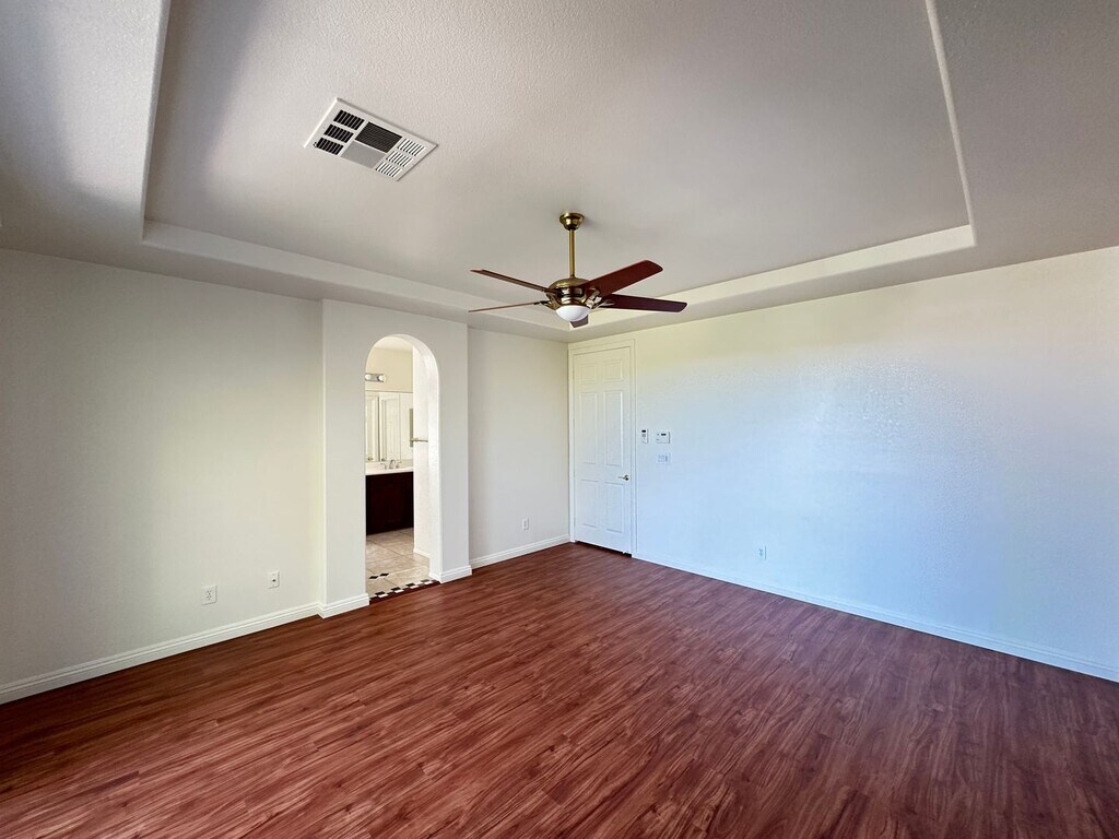 Beautiful 2-story home in Summerlin West featuring 4 bedrooms and 2.5 bathrooms. Freshly painted throughout with vinyl flooring—NO CARPET! Enjoy ceiling fans in every room, a balcony off of the primary bedroom for added outdoor space, and a backyard with a covered patio and fans—perfect for relaxing or entertaining. Price includes $50 per month for trash and sewer.