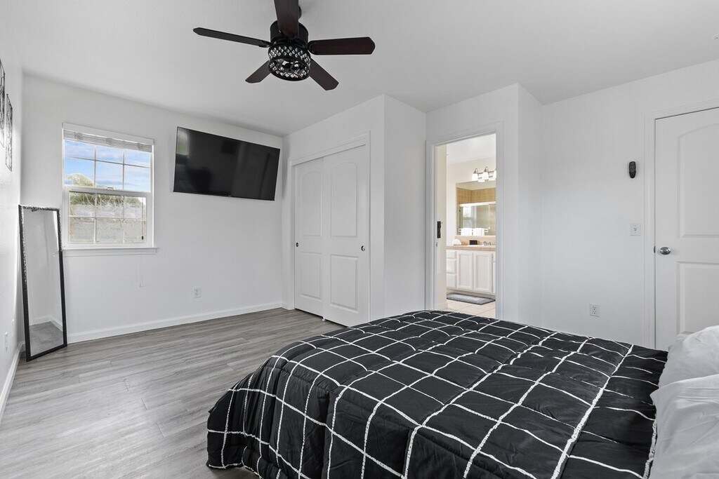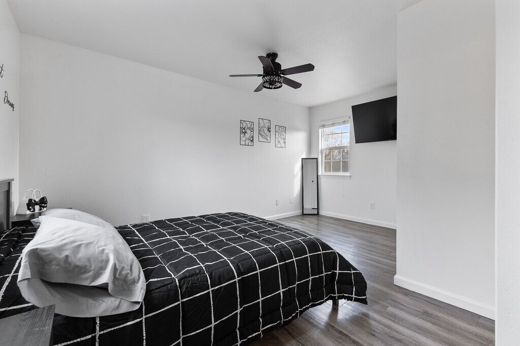 Welcome to this furnished 2-bedroom home with a flexible garage space, perfect for comfortable mid-term stays. Minutes from downtown with easy access to the SMART Train, hospitals, dining, and shopping. Two private primary suites, inviting living areas, and a fully equipped kitchen make daily living easy. Enjoy parking, a private outdoor retreat, and bonus space for guest accommodations or 2nd living room—ideal for traveling professionals or relocations.