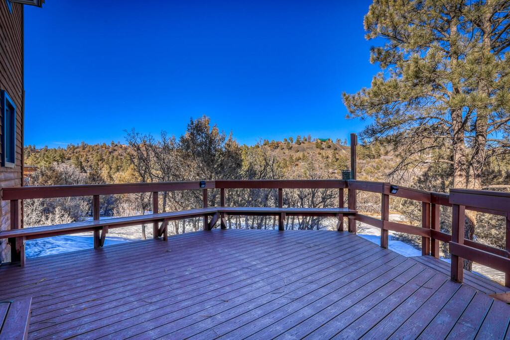 6+ ACRE MOUNTAIN OASIS! Large viewing deck from the back door to view wildlife and panoramic mountain views. Indulge in the oasis that is the Rocky Mountains from this spacious 3+ bedroom custom home that is sure to be your next home away from home! Whether you are soaking in the hot springs, skiing, rafting, exploring, the private 6 acres, or watching snow fall from the comfort of the warm indoors with the fireplace going, this home is the perfect fit for your next adventure! Pet friendly and has a fenced dog run for convenience. Use of the HOA Rec Center for a small fee. Houses indoor salt water pool, jacuzzi, weight room and more. Also have access to 5 stocked lakes for fishing and water sports. Sleeps 6. Rates: $325/Nightly Weekly: Monthly: $350/Holiday Nightly $2000 $3900 Housekeeping: $275/Stay $300/Holiday Pet Fee per Pet per stay $150 Managed by Rocky Mountain Realty and Rentals. Call or email for questions or reservations. Archuleta County Permit No. 036234 Indulge in the oasis that is the Rocky Mountains from this spacious 3- bedroom custom home that is sure to be your next home away from home! Whether you are soaking in the hot springs, skiing, rafting, exploring, the private 6 acres, or watching snow fall from the comfort of the warm indoors, this home is the perfect fit for your next adventure, and even includes a fenced in dog run for your furry family members! Archuleta County Permit No. 036234 SLEEPING ARRANGEMENTS: Sleeps up to 6 People Bedroom 1: King Bed Bedroom 2: Queen Bed Bedroom 3: Two Twin Beds Living Room: Leather Couch is a Queen Sized Pull Out PROPERTY DISTANCE TO: - Downtown Pagosa and Hot Springs (15 minutes) - Wolf Creek Ski Area (33 miles) - Durango La Plata Airport (54 miles) - Williams Creek/Piedra River Trail/Ice Caves Trail (40 minutes) POLICIES/RULES - Non-smoking on the property ($250 fine for smoking inside or outside) - Only dogs allowed, 2 max, with prior approval and $100 pet fee per pet. (Any damage or clean up will be charged to guest) - No parties, guests in home must match reservation (Reservation will be immediately terminated and no refund will be given) - No Parking in the Street (Any fine assessed by the county will be passed to the renter) WHY DO WE LOVE PAGOSA?: - We get the most snow in Colorado! What are lift lines? 10 different lifts service about 1,600 acres with the longest run at 2 miles (Navajo Trail). With a season that runs from November to April Wolf Creek Ski Area is where you will catch us in the winter! - Our wonderful little town is known for the world's deepest geothermal Hot Spring. There is no better way to end the day than soaking your body in our “healing waters” after a long day of outdoor adventure. - With 300 days of sunshine and 4 true seasons, Pagosa Springs will not disappoint! Three local breweries, incredible food, beautiful views, and year round activities to make your vacation one of a kind. FAQ: COMMUNITY AMENITIES: Available for an additional fee but gives you access to the indoor hot tub, pool (with lap lanes), fitness center, private lakes, fishing in four stocked lakes, and basketball/volleyball/pickleball/racquetball courts A/C: Most mountain residences, including this property, do not have air conditioning. Open your windows at night and close them in the morning to maintain the home cool during summer days