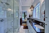 Feel at home in this luxurious and contemporary home in the heart of Myers Park, overlooking a lush, tree-lined median. This building has four residences, all with screened porches. The upstairs units offer partial skyline views of Uptown Charlotte. Each unit is individually decorated with comfortable furnishings and features Fisher & Paykel appliances and an elegant workspace. With spacious living areas, a screened porch (lower units), a private balcony (upper units), and a well-appointed gourmet kitchen, you will love coming home to this exceptional space. The kitchen is fully equipped. A fully stocked wet bar with an ice maker is located off of the large living room, offering a spot for socializing. The living room sofa converts to a very comfortable bed, and there's an elegant desk with a view of the front lawn and landscaped median. Furnishings include a mix of new, midcentury modern, and antique furniture with original artwork by local artists Nico Amortigue and Arthur Brouthers. A 7-day pass to Charlotte’s biggest and best fitness center, the Dowd Y, is available for $50. A workstation is available to rent out for your stay, including a monitor, keyboard, and mouse. This is a dog-friendly home, and dogs must be registered at a cost of $59 per dog (two maximum). If you do not register your dog, you will be charged $120 per dog. Ideally situated a mile from the Uptown business district, in a park-like setting, on an exclusive residential street, Hermitage Court, this property is near Charlotte's iconic attractions and cultural destinations. The streetcar to Uptown is a 10-minute walk away. Uber/Lyft are also convenient options, and many bikeshare companies offer inexpensive bikes and scooters. Within a half mile walking distance are more than 40 restaurants, many locally owned shops along the Myers Park Mile, and several parks, including an almost-private tennis court in Edgehill Park. Live theater is staged just around the corner at Theatre Charlotte, and independent movies are screened at the Manor Theater less than a half mile away. Top-notch medical facilities are 2-3 miles away, and SouthPark Mall is less than 5 miles away. Quiet hours are between 10 pm and 7 am. Dogs are never allowed on the furniture or bed. If there is hair on the furniture, excess hair in the home, stains, damage, or waste found in the yard or home, you will be charged an additional fee. No parties, additional guests, events, or large gatherings are permitted. Smoking and vaping are not allowed inside or outside the home or building. Guests must be at least 21 years old to make a reservation. Air conditioning must remain between 72 and 75 degrees in the summer and 68-72 in the winter and on AUTO to help ensure it stays in good working condition during your stay. Includes broadband highspeed Wi-Fi. [SI]