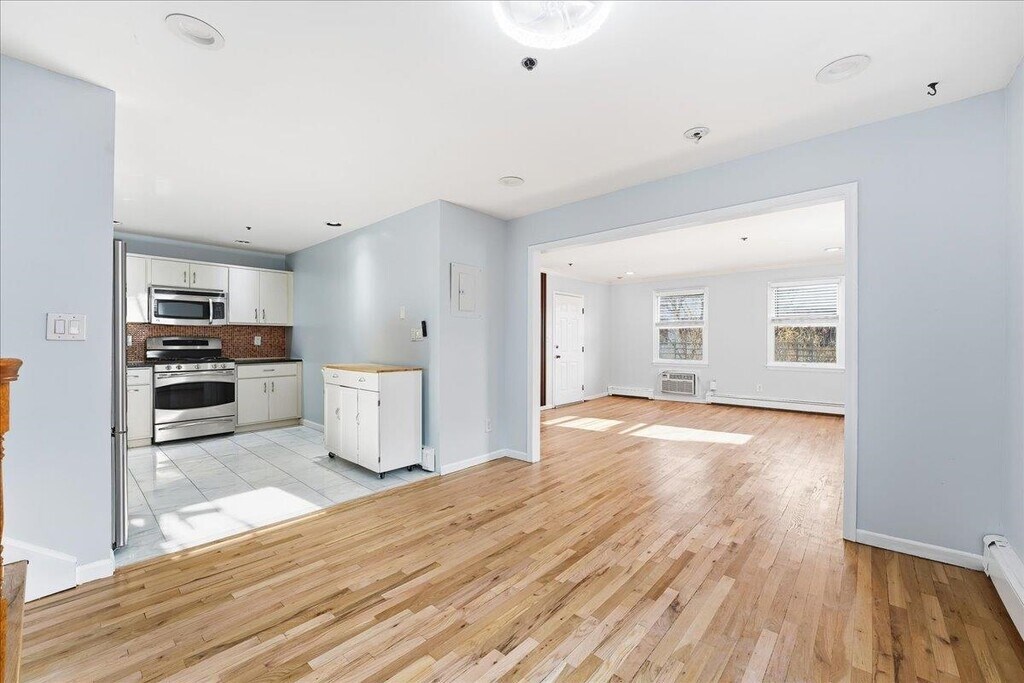 Spacious and sun-filled 3BR/2BA corner home with private garage parking and an expansive rooftop deck. This multi-level residence offers a rare layout designed for both entertaining and everyday living. The main level features an open living and dining area with oversized east- and south-facing windows that flood the space with natural light. Just off the dining area is a renovated kitchen with stainless steel appliances, ample cabinetry, and generous counter space. Upstairs are two well-sized bedrooms with large closets, two full bathrooms, and an in-unit washer and dryer. The top floor offers exceptional flexibility with a bonus office or secondary living space, direct access to a large private south-facing rooftop deck, and a third bedroom—perfect for guests, a home office, or added privacy. Additional highlights include hardwood floors throughout, abundant natural light in every room, private indoor garage parking, and excellent storage. Ideally located just minutes from NYC transportation via Light Rail and bus, and close to Hoboken’s top coffee shops, restaurants, grocery stores, parks, and schools.