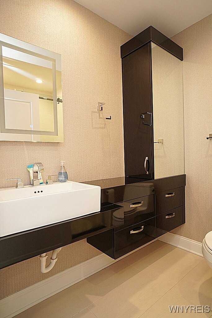 Sleek and Modern 6th floor Corner Unit condo in the Heart of Buffalo's Theatre District! One Bedroom One Bath. The living room consists of living/dining space with breathtaking views of the City. A modern kitchen with high-end appliances and granite countertops. Hardwood floors throughout,crown molding,and recessed lighting. In-unit laundry. Secure lobby with front desk 24 hour security. There is a spacious storage unit in basement. One assigned parking spot in the heated underground parking garage is included. A very short walk to Shea's,all the hot restaurants in the theatre district and everything else Downtown Buffalo has to offer.