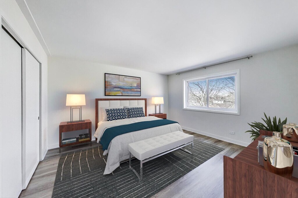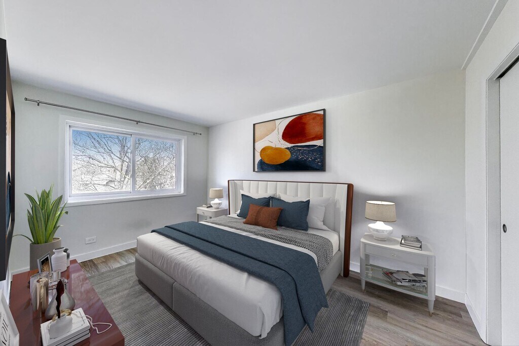 This beautifully updated condo features a newly redesigned kitchen with quartz countertops, an undermount sink, soft-close 42" upper cabinets, pull-out drawers, a lazy Susan, and sleek stainless steel appliances. Enjoy seamless flooring throughout, radiant-heated floors, and a smart thermostat for year-round comfort. Additional upgrades include new wood baseboards and trim, updated outlets and switches, a new wall A/C unit, and energy-efficient thermal windows. The refreshed bathroom boasts a stylish new vanity, updated tile work, and a dual-flush toilet. Gas, water, and radiant heat are all included in the monthly rent. The building also offers a convenient standard laundry room, private storage units and an enclosed locked shed for bikes. 3 parking spots and an elevator to bring up your groceries. Ideally situated near downtown Elmhurst, this condo is just one mile from the Elmhurst train station and within the highly rated District 205 schools. Walk to Smalley Pool, Pioneer Park, the Illinois Prairie Path, restaurants, and a grocery store just minutes from your doorstep!
