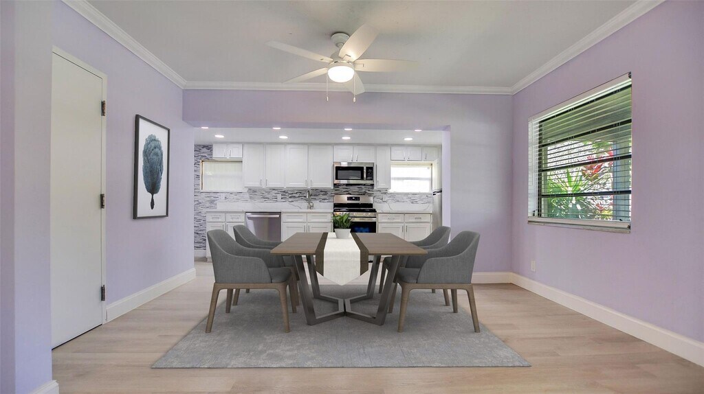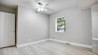 COURTESY OF Town Real Estate Refined three-bedroom, two bathroom home located in the highly desirable Croissant Park neighborhood. The freshly painted white interior enhances the bright, open feel while complementing the sleek contemporary kitchen and elegant gray laminate flooring throughout. Both bathrooms have been thoughtfully updated with modern finishes, and a dedicated laundry room with generous storage adds everyday practicality. Step outside to an inviting outdoor living area surrounded by expansive green space and manicured landscaping, offering a peaceful setting for relaxing or entertaining. Ideally situated just minutes from pristine beaches, the airport, major highways, and an array of dining and entertainment options, this property combines comfort with exceptional convenience. Available early April two thousand twenty-six, this home presents a wonderful rental opportunity in a prime location.
