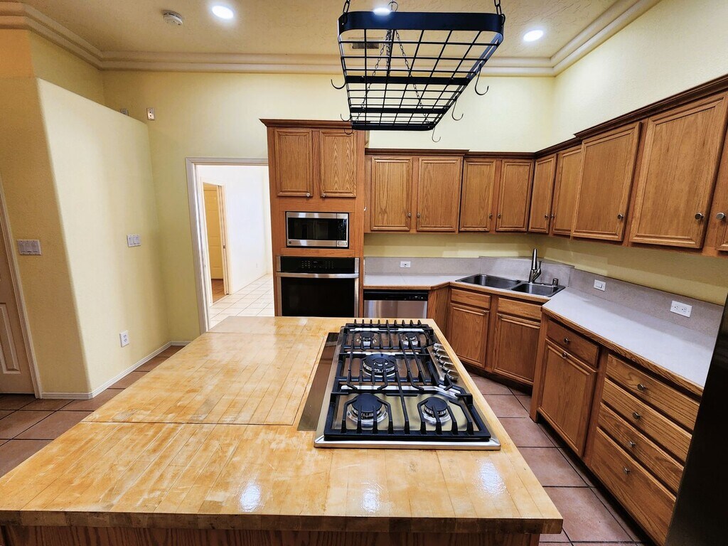 Welcome to 600 Stone Canyon, a stunning, pet friendly, 3-bedroom, 2.5-bathroom home located in the desirable Las Alamedas neighborhood of Las Cruces. This corner lot property boasts an oversized garage with a fridge, convenient restroom, and ample parking with three driveways and drive-thru gates to a beautifully maintained back yard garden. The home is perfect for outdoor enthusiasts, offering RV parking and breathtaking Organ Mountain views. Inside, you'll find all tile flooring and custom tile throughout, adding a touch of elegance and easy maintenance. The kitchen is equipped with brand new stainless steel appliances and plenty of cabinets for storage. The home also features a large laundry room and a wet bar, perfect for entertaining. The location is unbeatable, being very near Mountain View Medical Plaza and Hospital, Centennial High School, and Wal Mart Neighborhood Market. Welcome to your dream home at 600 Stone Canyon. Apply today --->