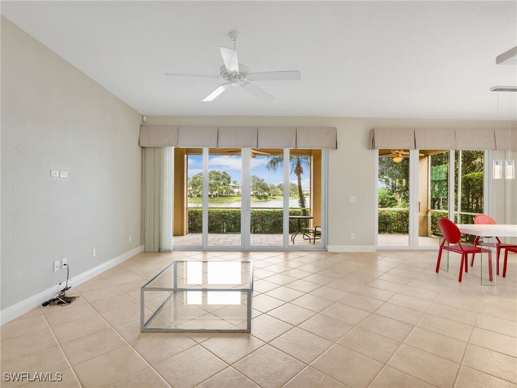 Large and beautiful 2 bedroom plus a den coach home in The Vineyards. This first floor unit is over 2000 sqft of living space and has tile throughout the entire home. Huge great room with dining area,pass thru kitchen with island and breakfast area and the kitchen offers hard surfaced counter tops and stainless steel appliances. Primary bedroom has direct access to the lanai and a lake view,2 closets and large bathroom. The guest bedroom and den are very nice size and there is an extra storage in the home and also off of the lanai. The property also has a 2 car garage,large utility room with laundry tub. The best feature is the AMAZING lake view. HOA to provide cable and internet. Available January 1st.