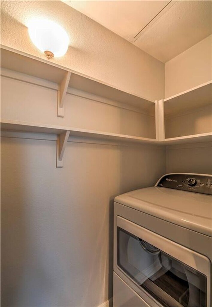 Tranquil condo with gorgeous wooded view available now! Step into this lovely FURNISHED ground-floor condo with lovely views of nature, sip coffee while listening to the birds in the trees, or enjoy breakfast while looking out of your bay windows in the dining area! This lovely home features stainless appliances, granite counters, washer & dryer included, built-in bookshelves, ceiling fans, 2 parking spaces, and much more! Lounge by the large community pool, or get your work out done in the onsite gym! You'll love the community and the serene surroundings by the 360 Bridge!