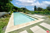 Malibu Retreat on Philip Avenue. Tucked away on approximately one acre with ocean views, this 5,966-square-foot estate combines modern sustainability with timeless California living. Designed for comfort and functionality, the property features a main residence and guest house powered by an advanced solar system with Tesla battery backups, ensuring peace of mind and continuous power, even during extended outages. Interior Highlights- the main level showcases walnut floors, while the lower level is finished in limestone. Expansive bedrooms include large walk-in closets and spa-inspired bathrooms with dual sinks, jacuzzi tubs, and private shower rooms. Automated Lutron lighting, programmable shades, and radiant heating provide both luxury and efficiency throughout. The chef's kitchen is fully equipped with a six-burner Viking gas cooktop, a wok burner, a 30 Viking electric oven, dual dishwashers, multiple refrigerators, and freezers, making it an entertainer's dream. Adjacent, the living spaces feature skylights, electric shades, and seamless indoor-outdoor flow. Outside, a 52-foot heated pool with an electric cover invites year-round enjoyment, complemented by a large Viking BBQ, heated patios, and landscaped vegetable gardens with drip irrigation. A standing seam roof, integrated alarm system, and automated exterior lighting offer durability and security. The detached guest house includes its own solar source, electric water heater, radiant heating, and ceiling fans, ensuring complete independence and comfort. Dual laundry rooms, including a garage setup that operates during outages. Custom details include energy-efficient standing seam roofing and a Lutron lighting system. Security lighting is activated by bedside and entryway controls. This Malibu retreat balances modern sustainability with elegant living, making it an ideal sanctuary and just a quick walk to the beach." MLS# 26640761