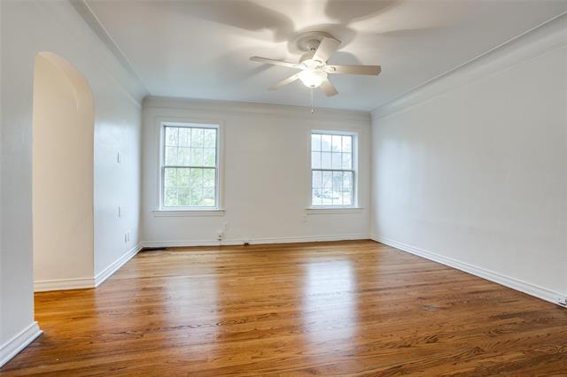 Charming first floor duplex located on a corner lot in one the best blocks in the Park Cities, feeding to Bradfield Elementary. This 2 bedroom, 2 full bath home features an open floor plan with extensive wood floors, an abundance of natural light, and all sorts of original detailing. Come in through the quaint foyer with its built-ins, into the sizable living room with wainscoting on the walls and a decorative fireplace. The kitchen and dining room offer all you need for cooking and hosting, alike. Both bedrooms are spacious, with the primary having its own private en suite bathroom. Comes with a private garage and another covered spot. Washer and dryer included. Fantastic location just minutes from Highland Park Village, parks, and the Tollway!